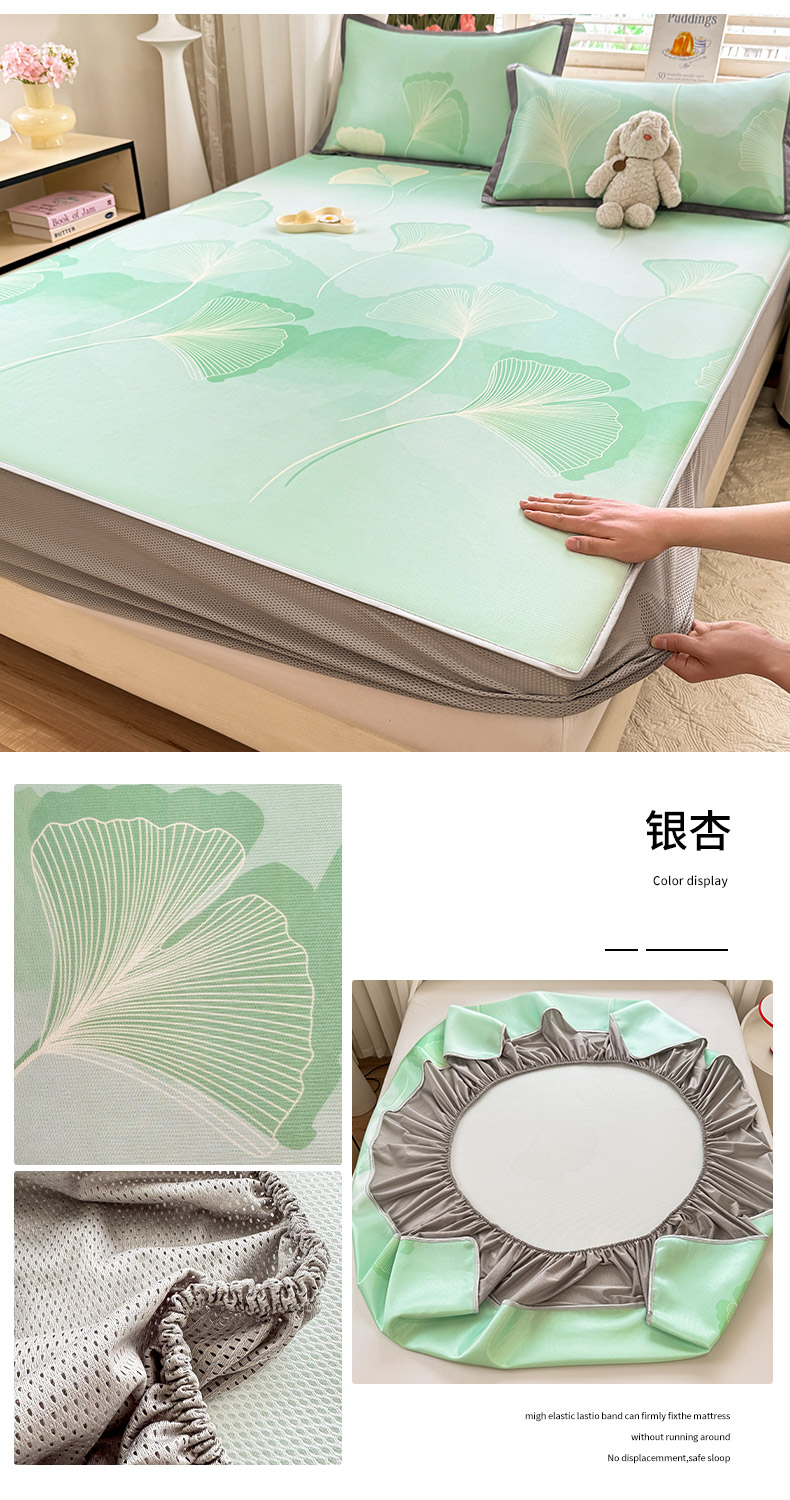 • 91家纺网 家纺一手货源 找家纺 518家纺 2025新款亲肤舒适A类碳光冰丝抗菌凉席【提供买家秀】席子【提供买家秀】-平铺款 银杏