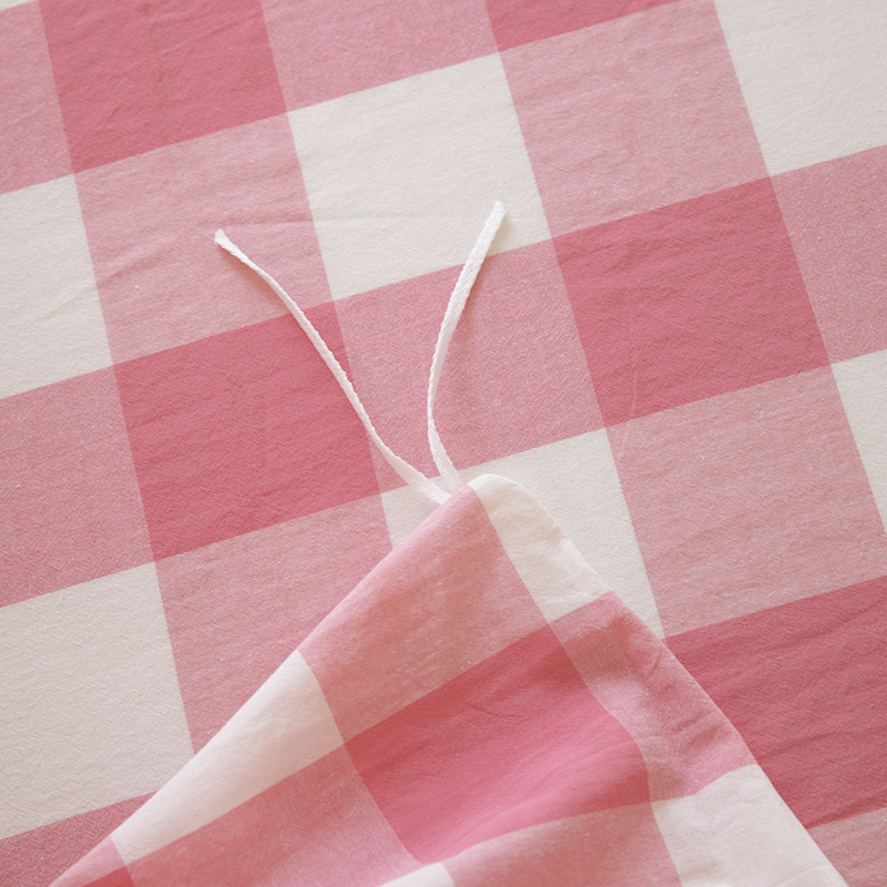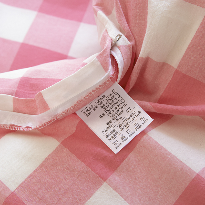 商品名称:木易家居 2025新款全棉色织水洗棉四件套 桃红中格