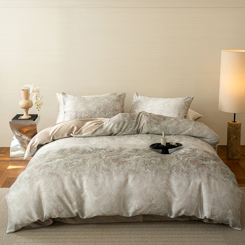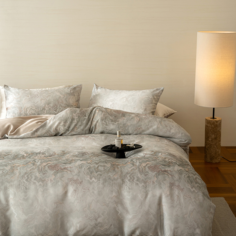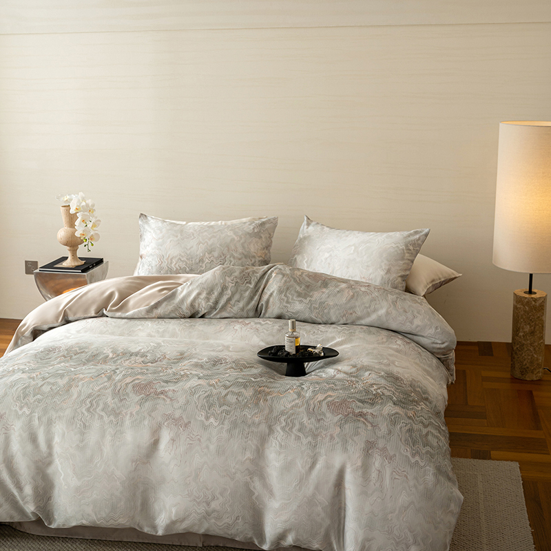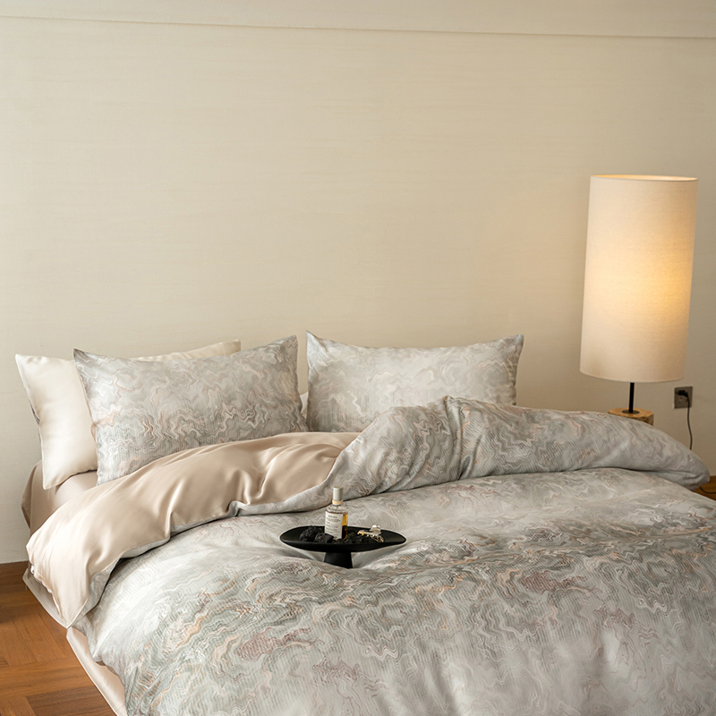 当前位置: 91家纺网 > 商品网购 > 床品套件 > 四件套 > 其它四件套 > 咏绒家纺工厂店 2025新款60S奥地利兰精天丝数码印花暗合简约款系列四件套 望川-灰
