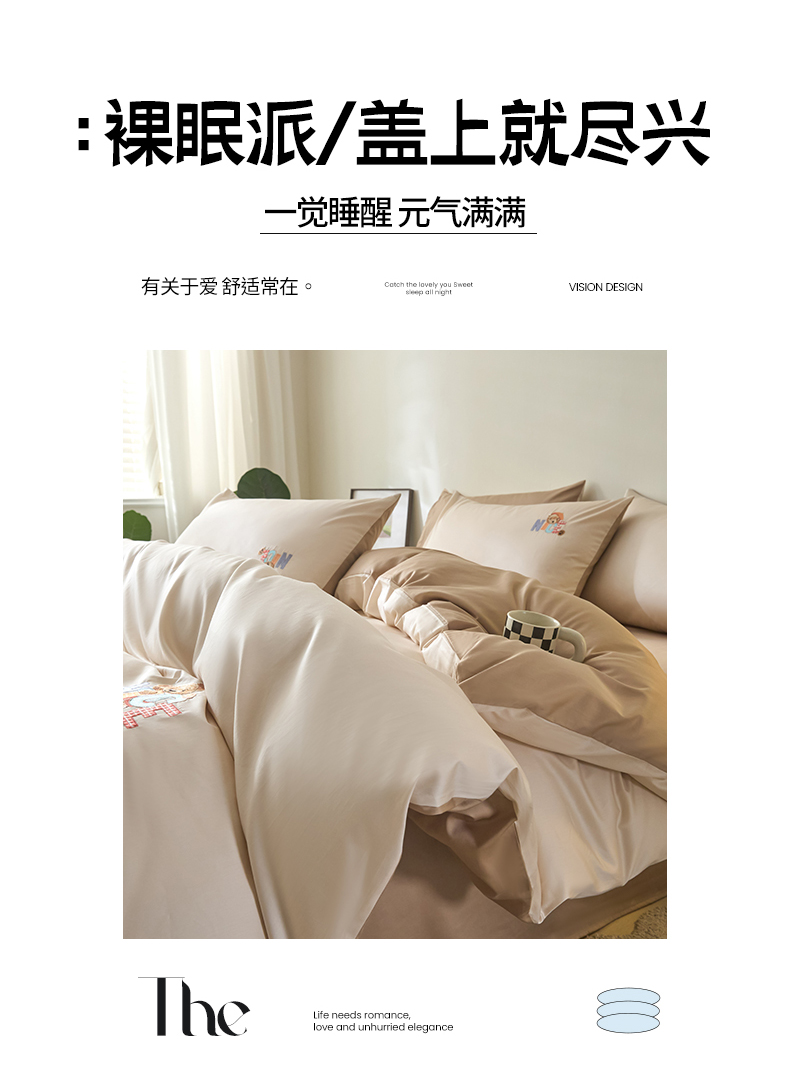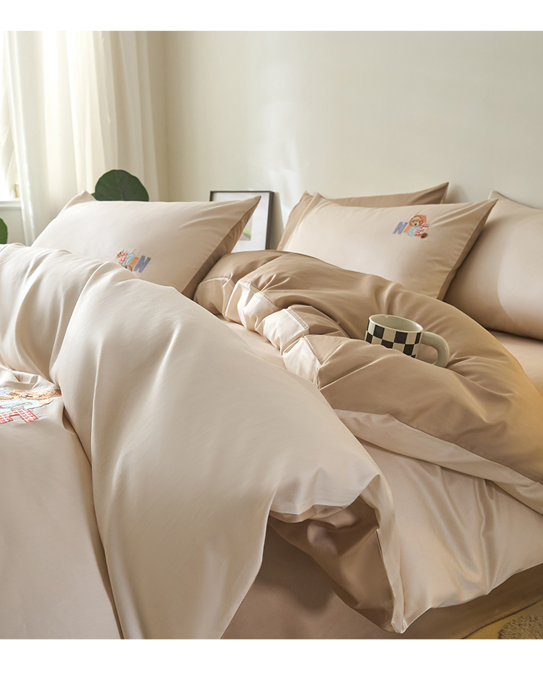 (总)拼社家纺 2025新款母婴及全棉水洗棉刺绣四件套纯棉床上用品,艾玛绿+卡其,繁星蓝+卡其,繁星蓝+玫瑰粉,红豆沙+雅灰,迷雾灰+玫瑰粉,蜜粉+雅灰,奶油白+卡其,奶油白+香橙,牛仔蓝+浅蓝,香橙+雅灰