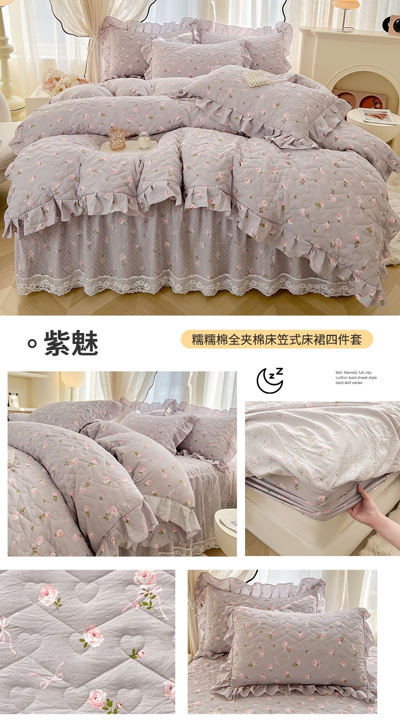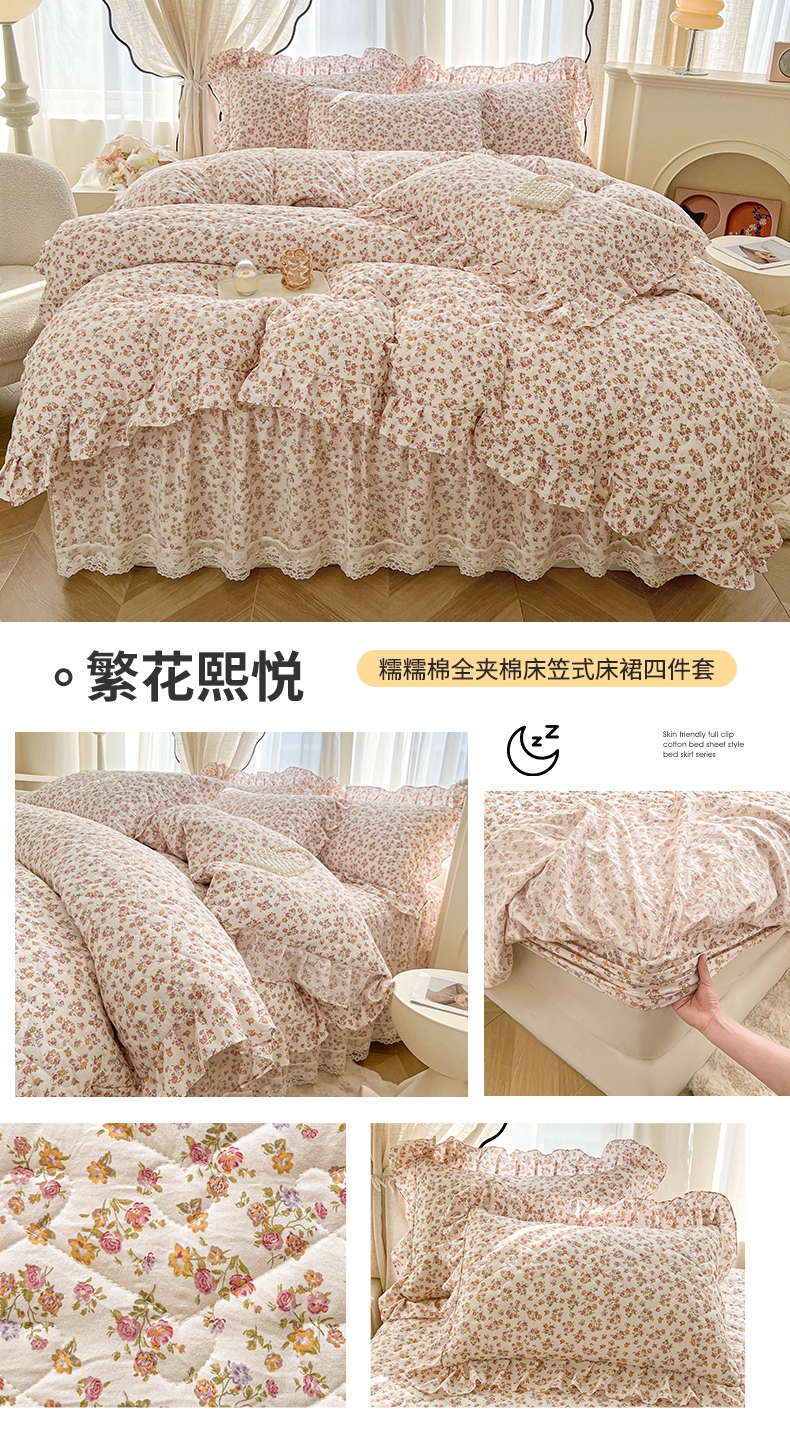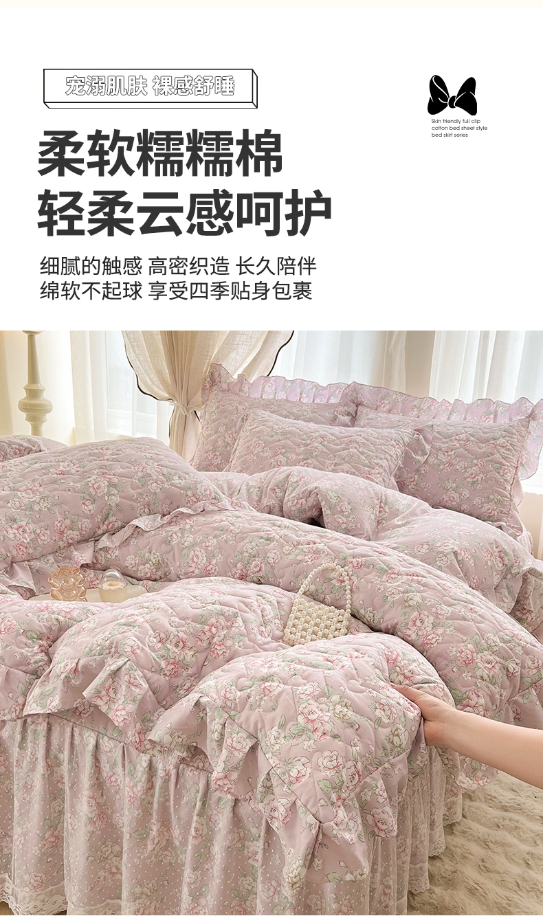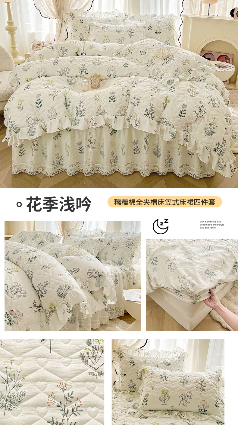 商品名称:(总)宜凡家纺 2025新款糯糯棉全夹棉床笠式床裙四件套