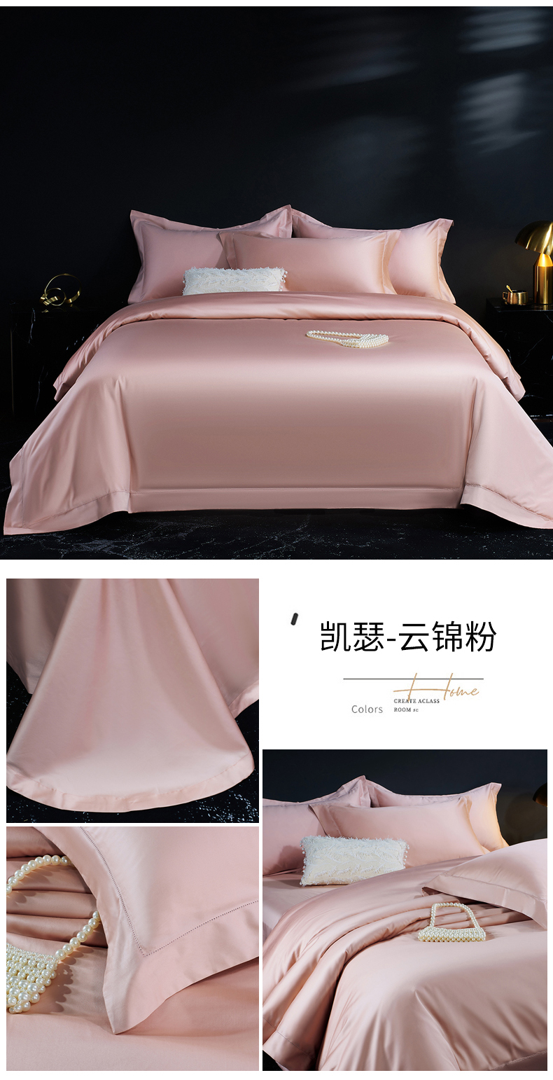 商品名称:淼铭家纺 2025新款双股长绒棉四件套-凯瑟系列 凯瑟-云锦粉
