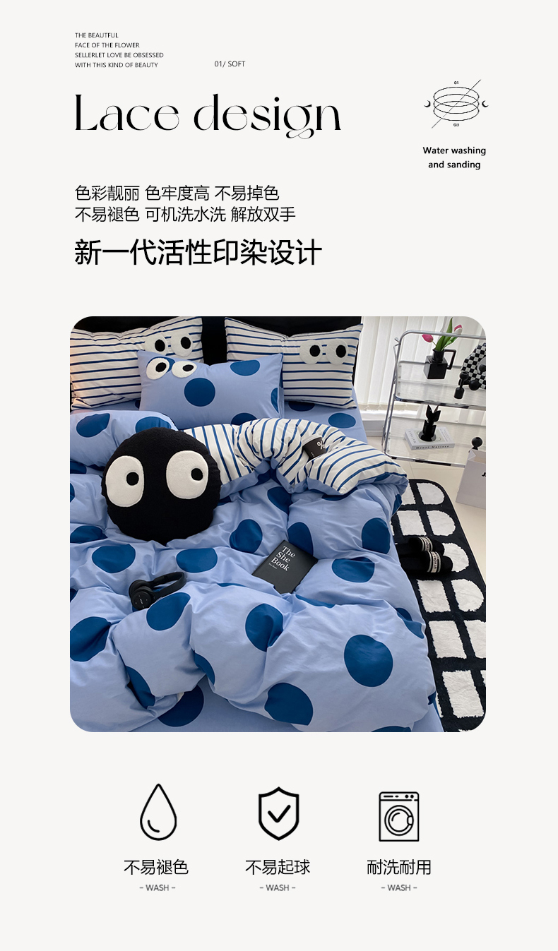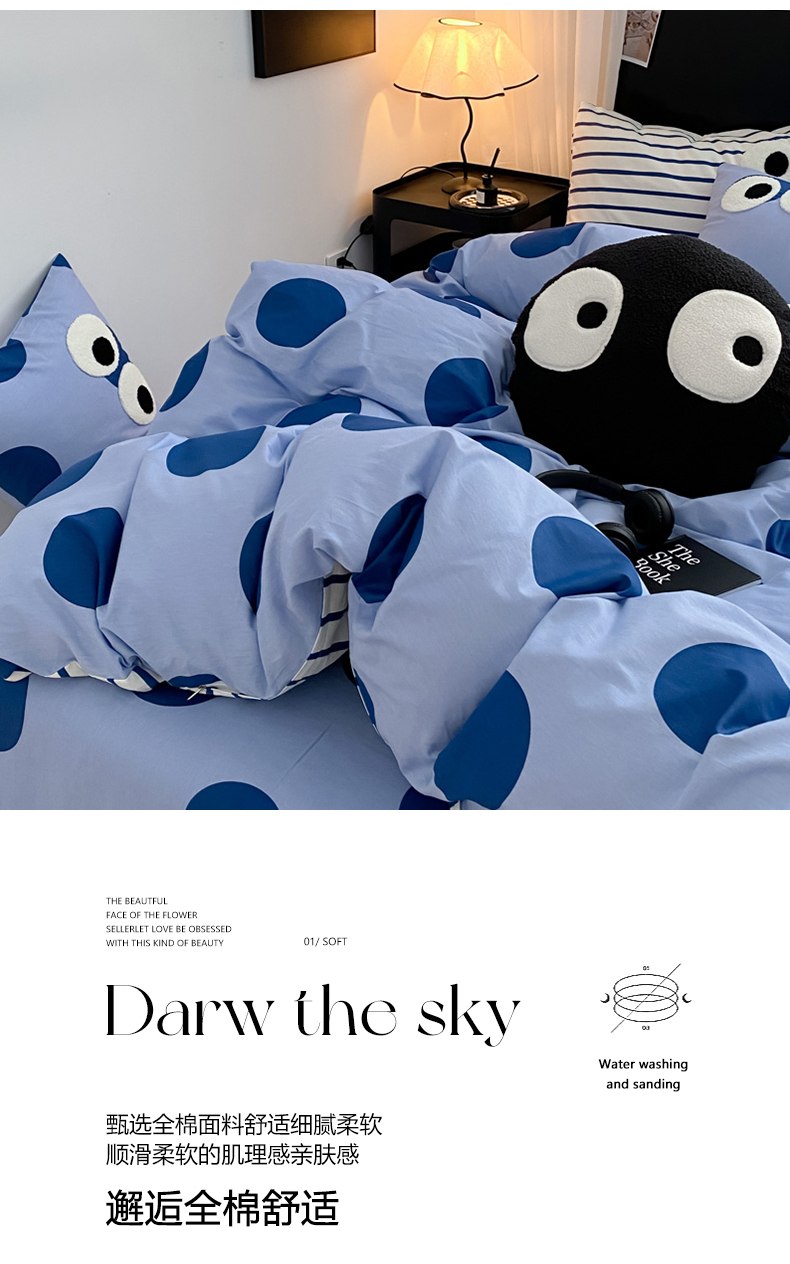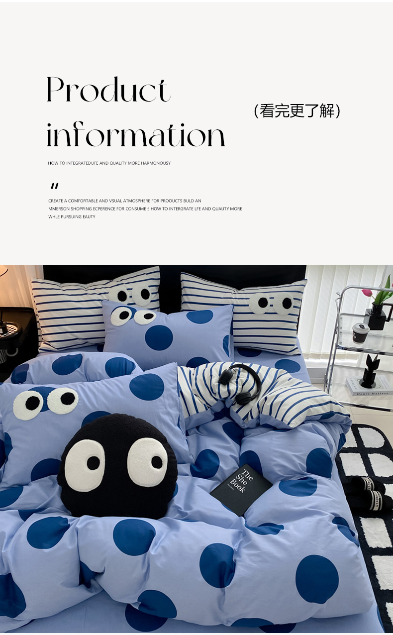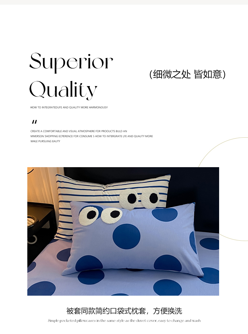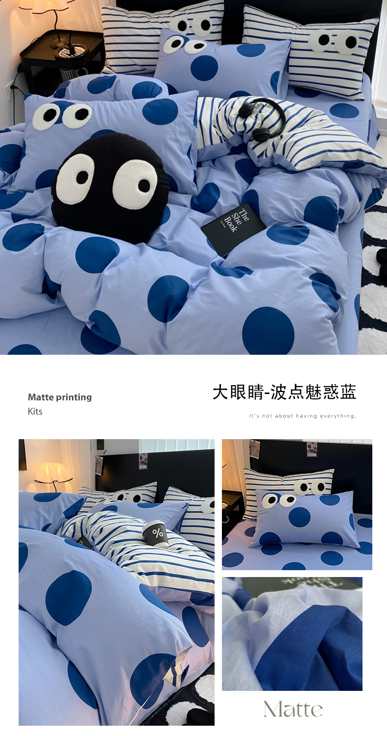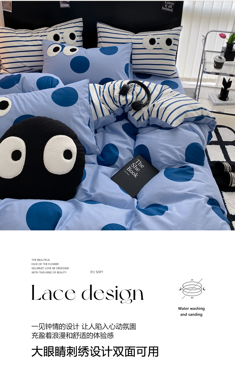 商品名称:吉象 2025新款大眼睛毛巾绣四件套 大眼睛-波点魅惑蓝