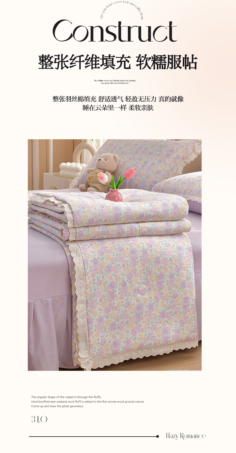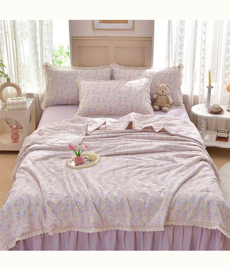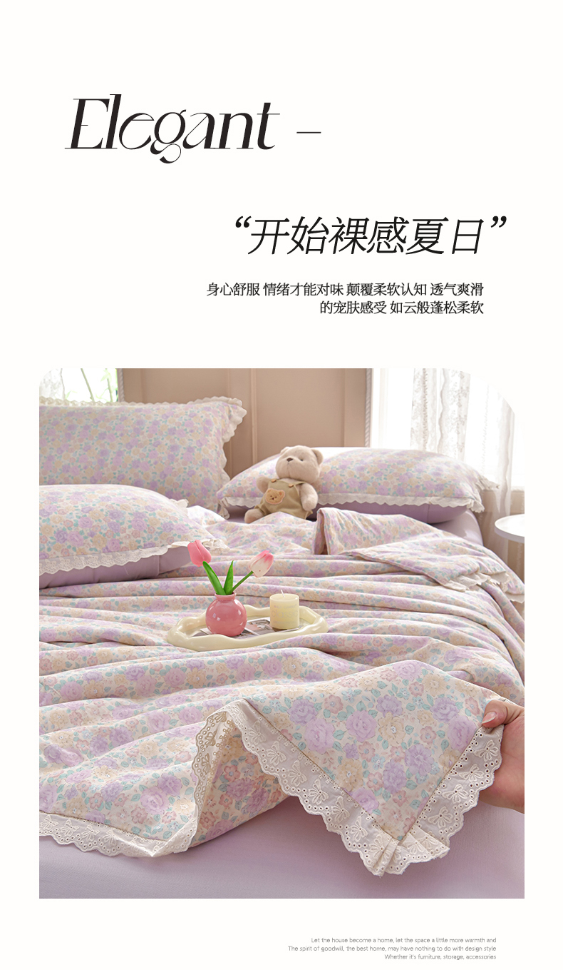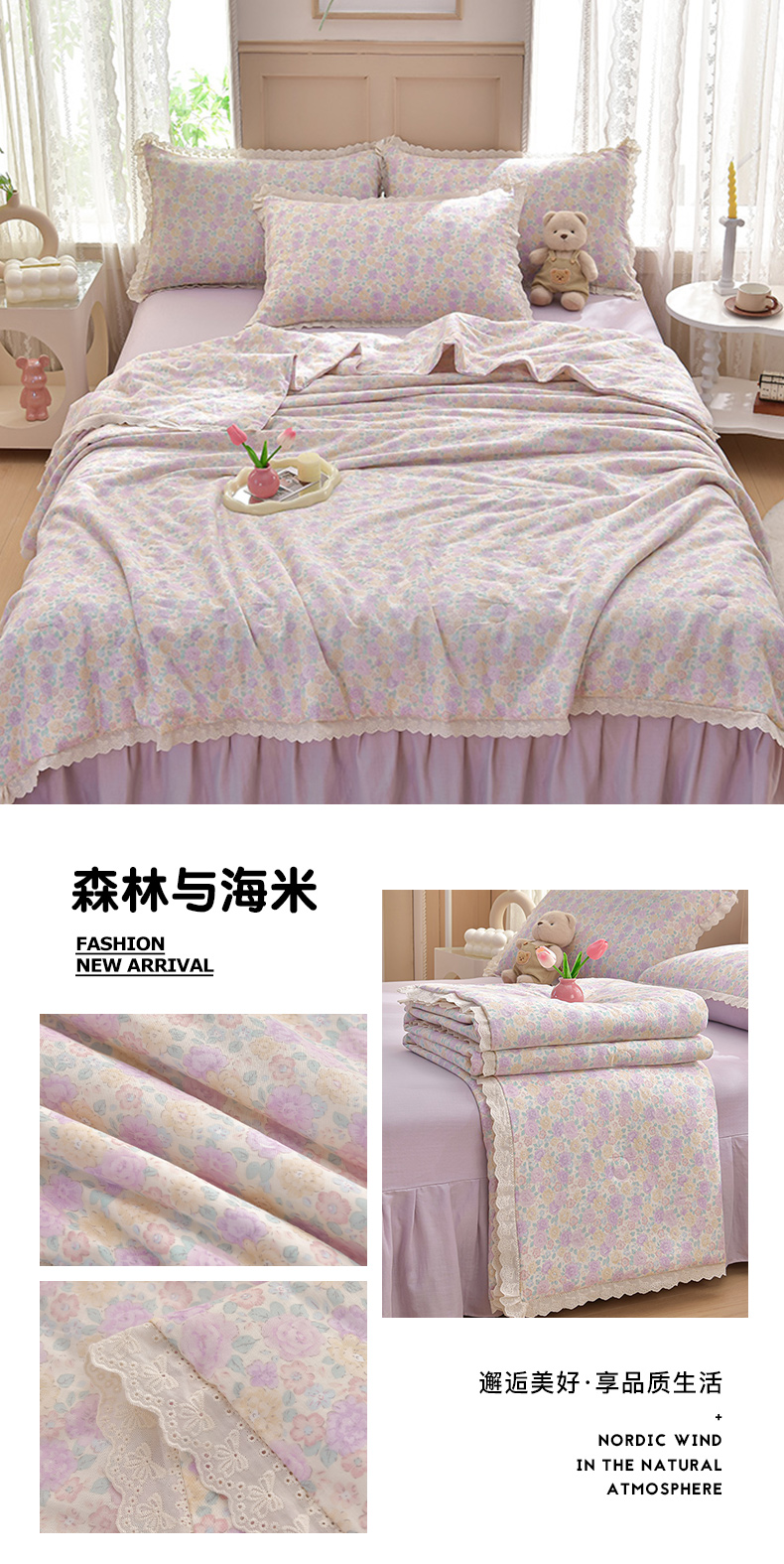 绘萱家居 2025新款100%全棉双层纱花边床裙款夏被四件套 森林与海米