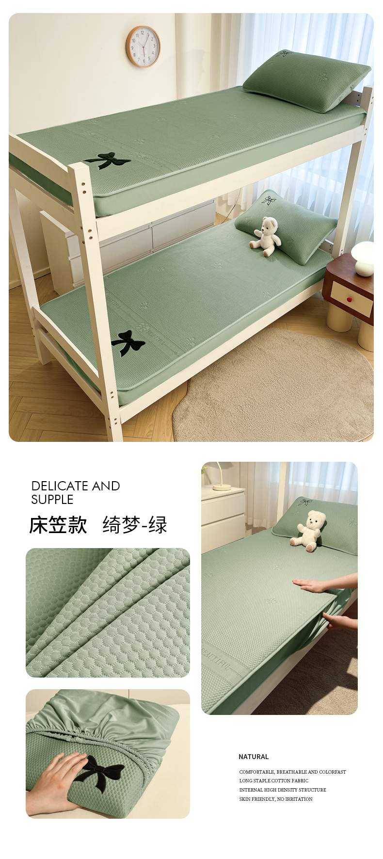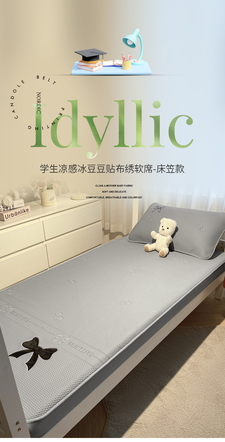 (总)爱思凯家纺 2025新款【学生】PE冰豆豆凉席-绮梦系列-床笠款
