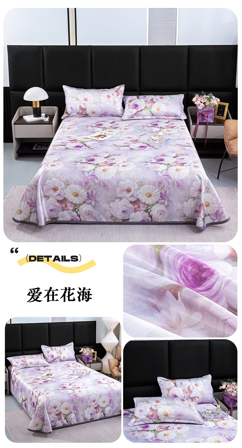 商品名称:念家居 2025新款5D数码印花凉感丝凉席款 爱在花海