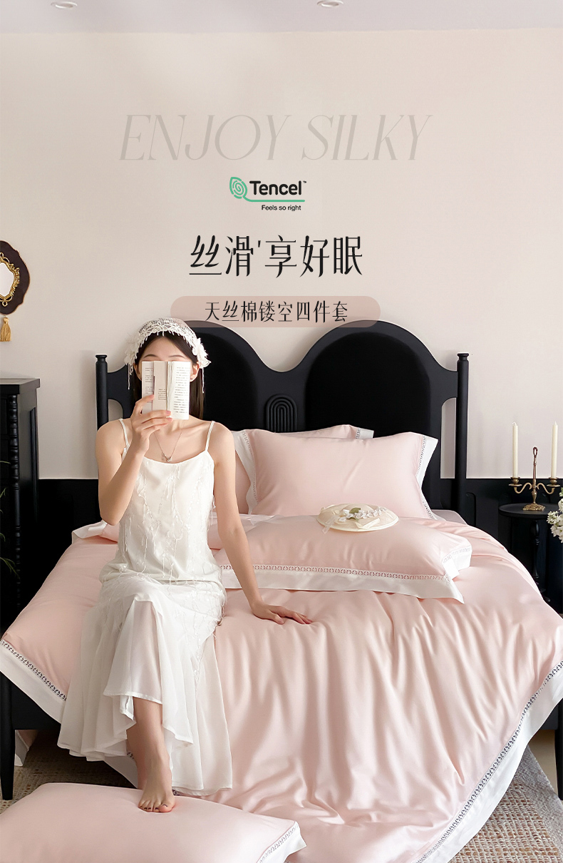 商品名称:云栖家居 2025天丝棉镂空四件套-观夏 观夏-粉