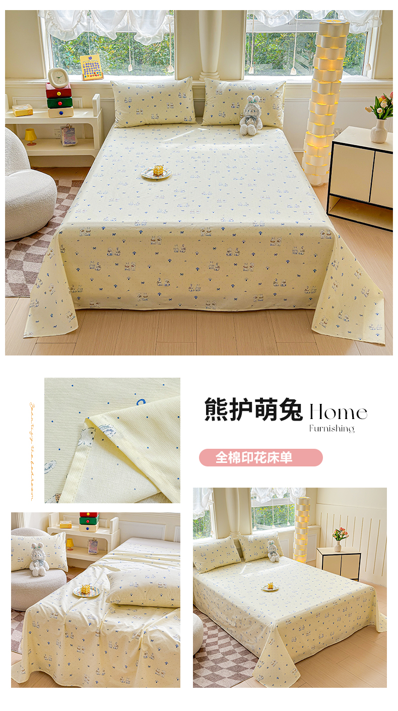 (总)感遇家纺 2022新款全棉印花四件套,格子草莓,花晓,滑板小熊,萌宠,时光,兔宝宝,熊先生