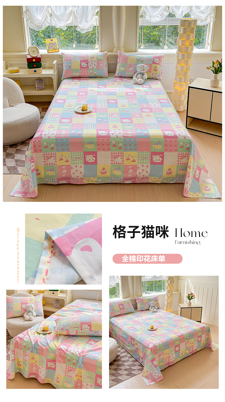 (总)感遇家纺 2025新款小清新甜系全棉四件套,百丽兔,波点小女孩,点点小狗,复古樱桃,格子草莓,格子樱桃,花间牧歌,灰条猫咪,奶绿,宁夏,森林小熊猫,甜心波点