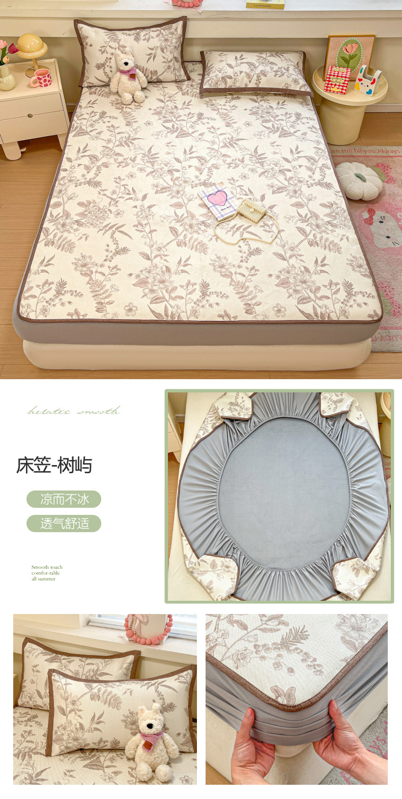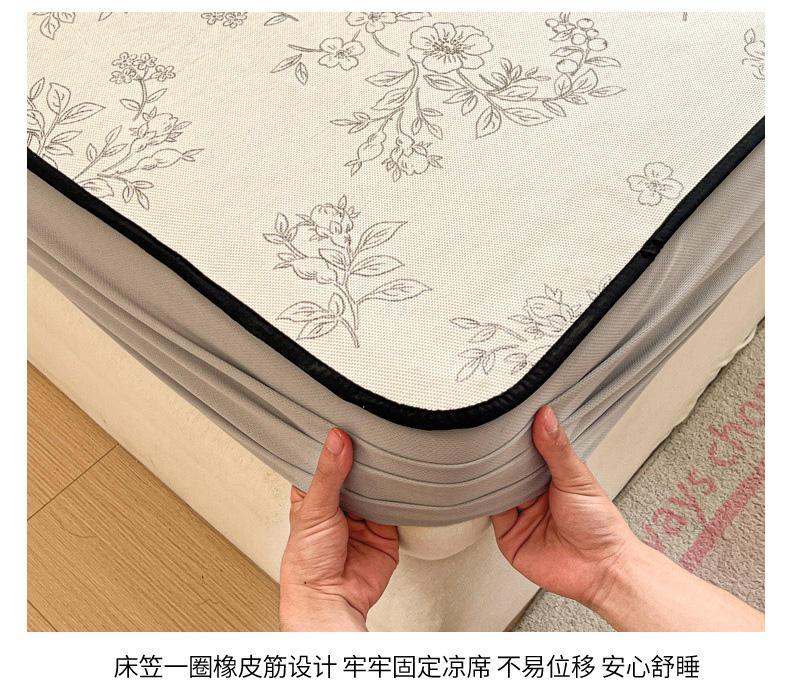• 91家纺网 家纺一手货源 找家纺 慕澄家纺 2025新款小清新印花真冰藤系列凉席床笠款 床笠-害羞喵