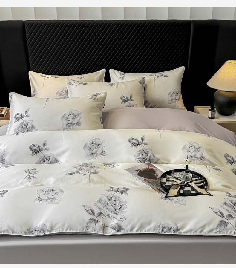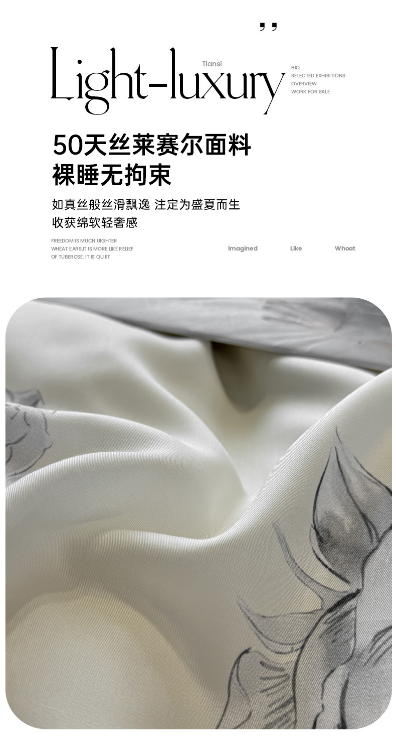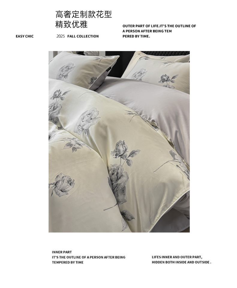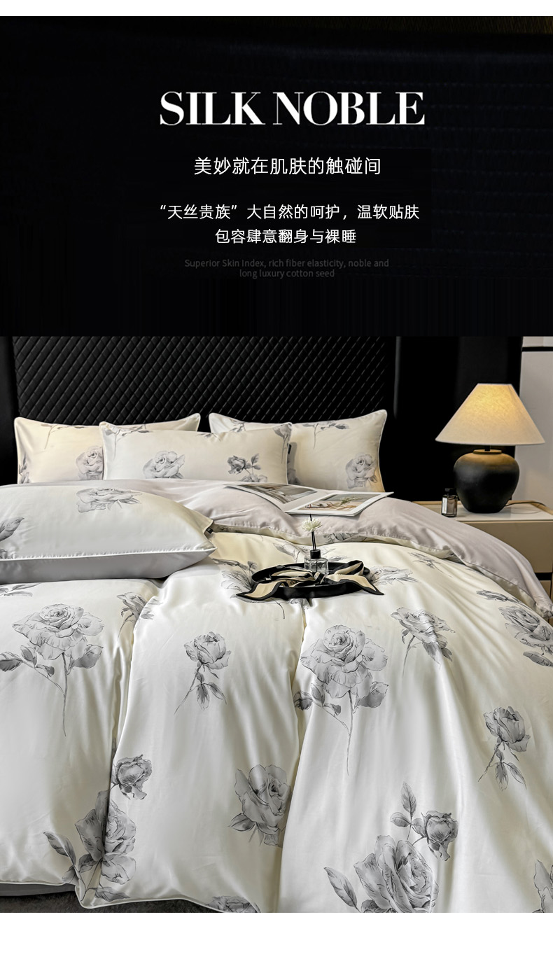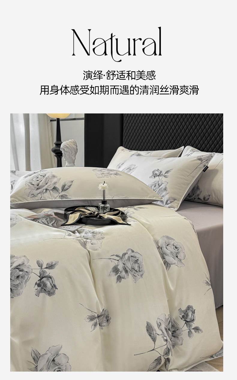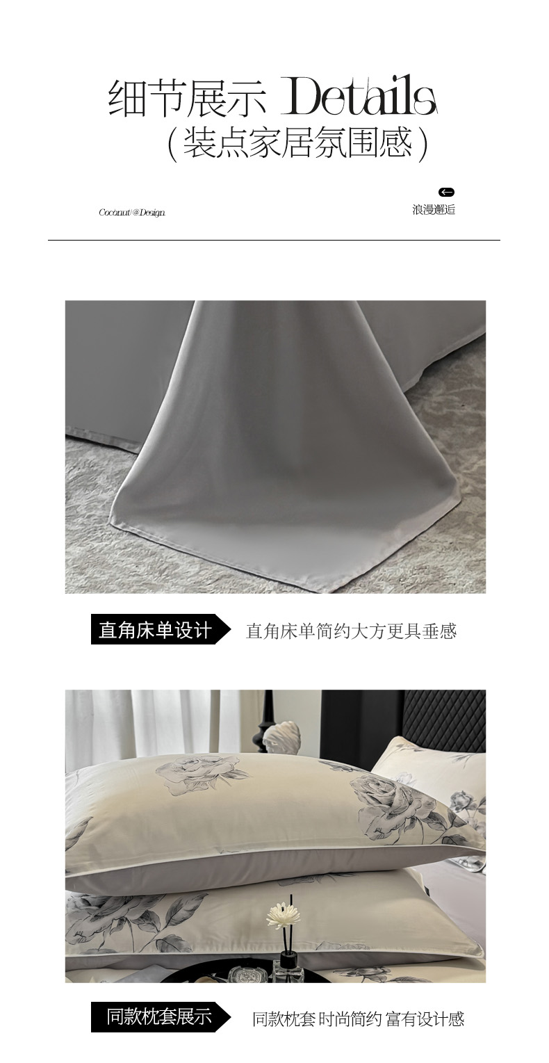 洺兰家居 2025春夏新款100支莱赛尔天丝贡缎数码印花麻绳款四件套高端礼盒 瑰丽灰