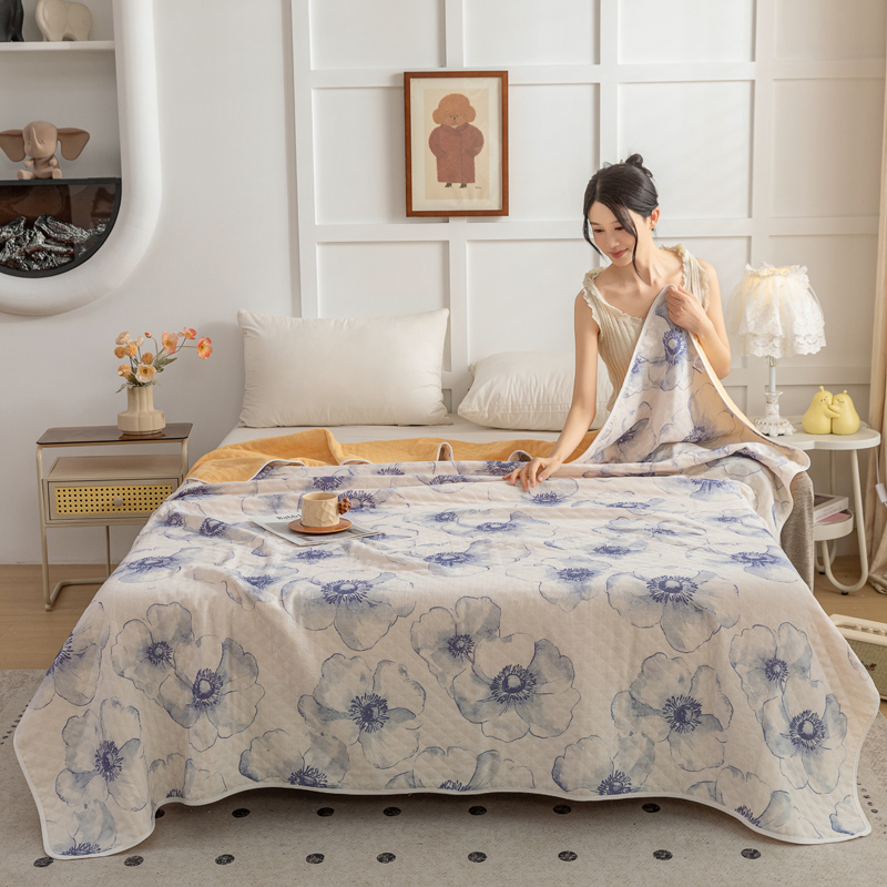 商品名称:乐家毛巾被(工厂自产自销) 2025新款A类全棉六层纱印花毛巾被 水墨花开