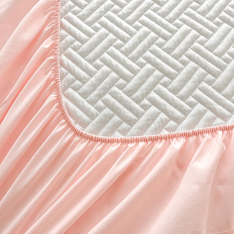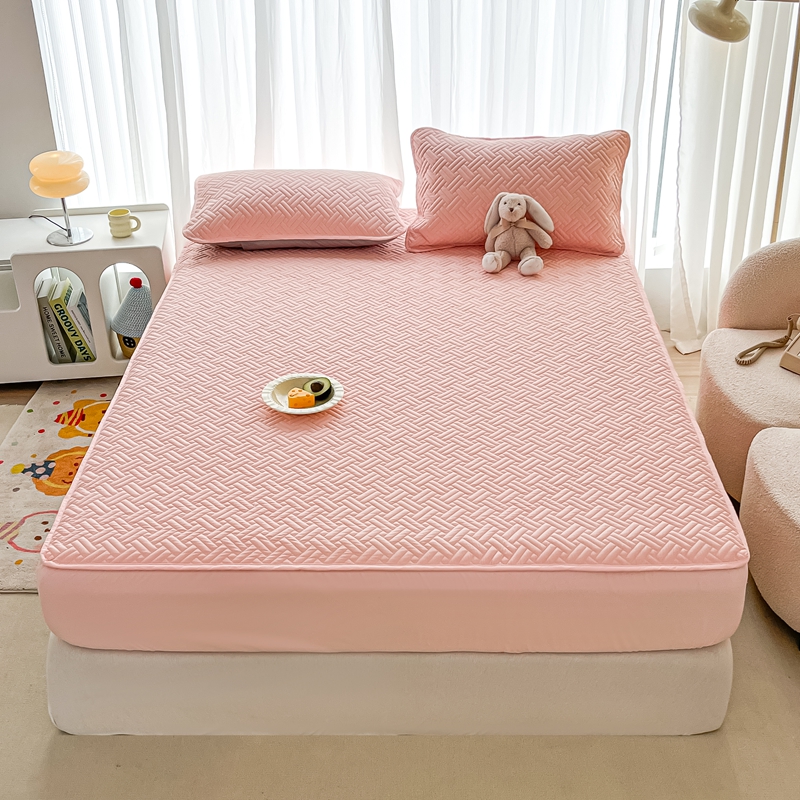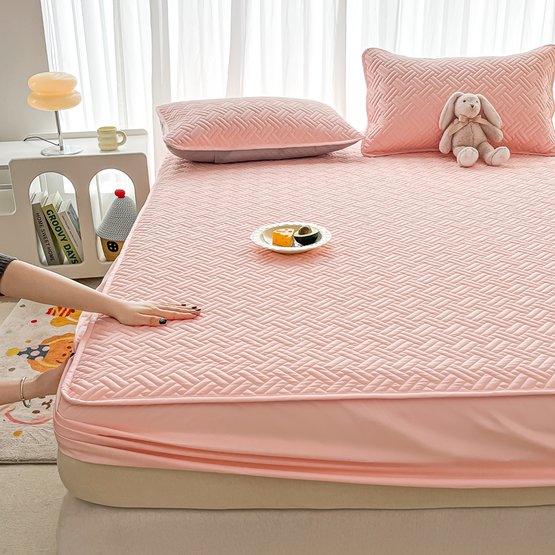 商品名称:欧邦 2025新款四季款纯色水洗棉夹棉床笠床垫保护罩-场景一 条格-粉玉
