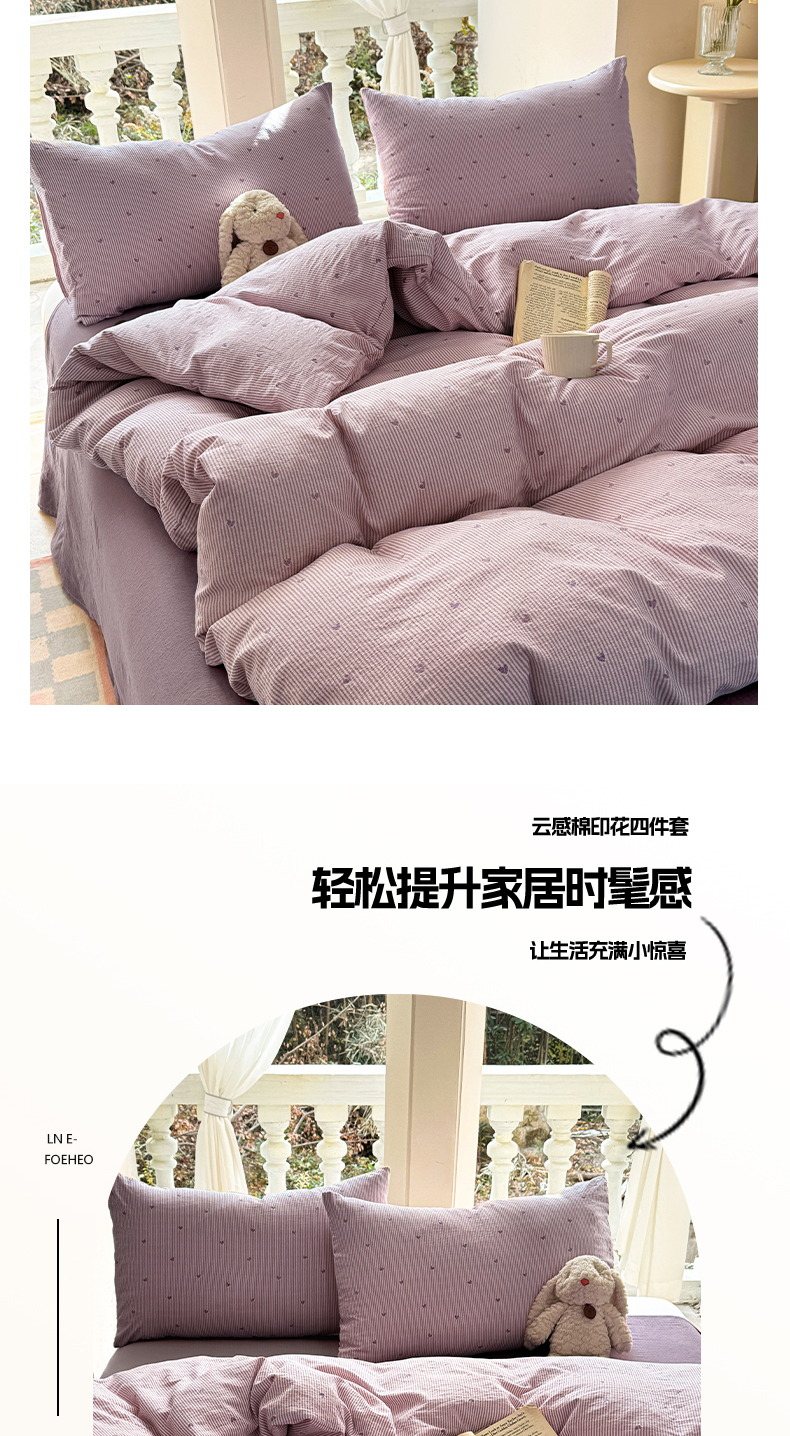 当前位置: 91家纺网 > 商品网购 > 床品套件 > 四件套 > 双层纱四件套 > 韩巢家纺 2025新款云感提花双层纱单被套被套单件单品被套-(提供卖家秀) 紫倾心