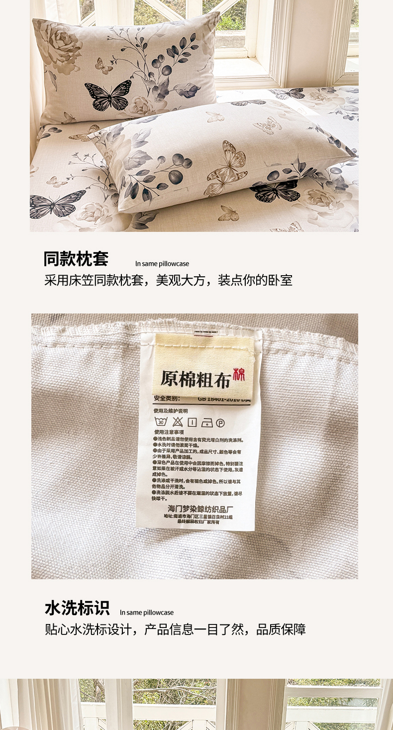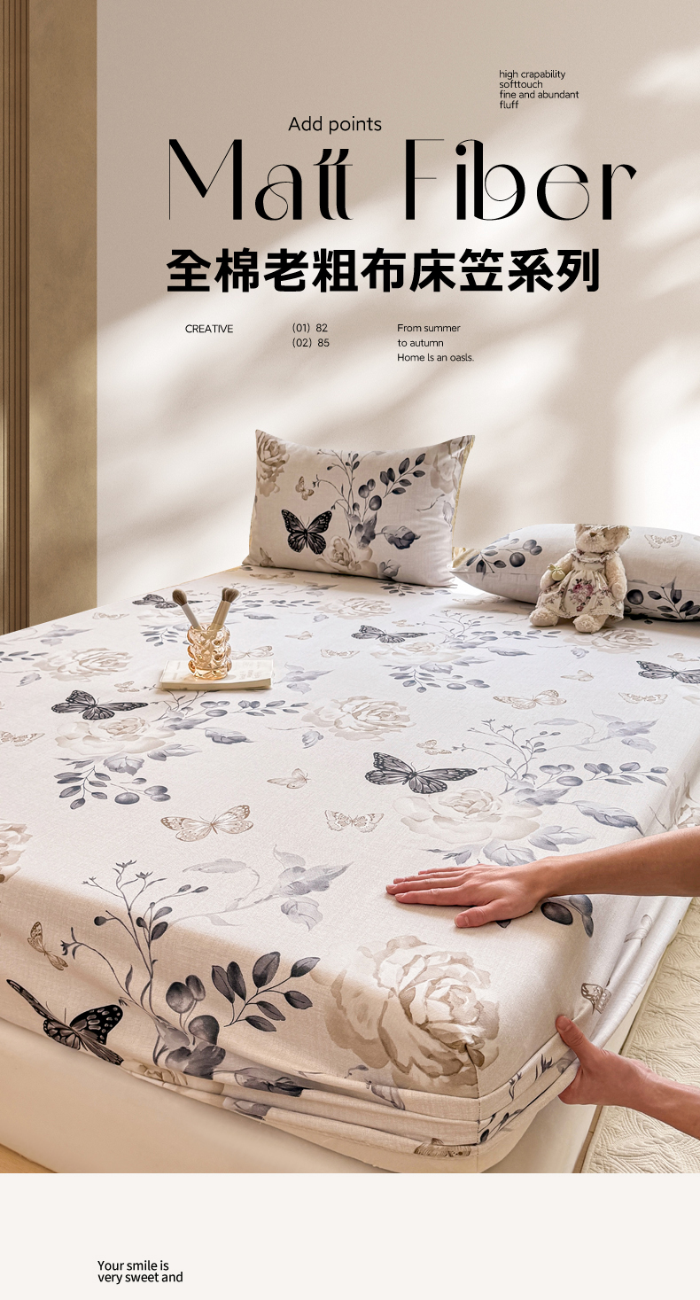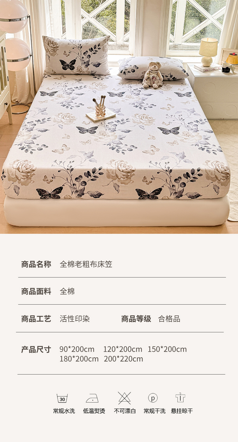 • 91家纺网 家纺一手货源 找家纺 韩巢家纺 2025新款全棉纯棉田园小清新花卉老粗布席子凉席夏季凉席席子床笠款床套 花蝶纷飞