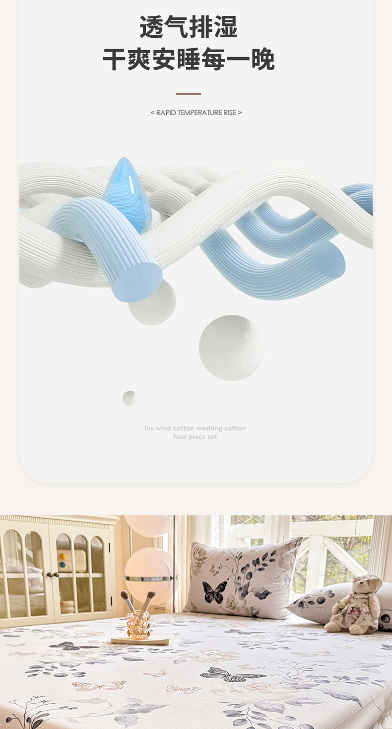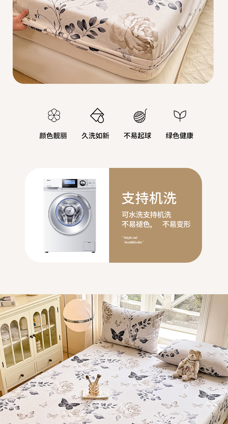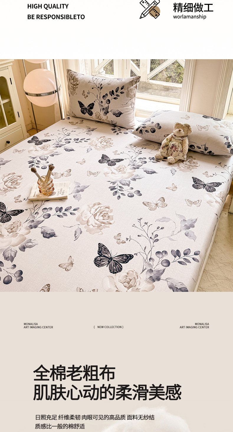 • 91家纺网 家纺一手货源 找家纺 韩巢家纺 2025新款全棉纯棉田园小清新花卉老粗布席子凉席夏季凉席席子床笠款床套 花蝶纷飞