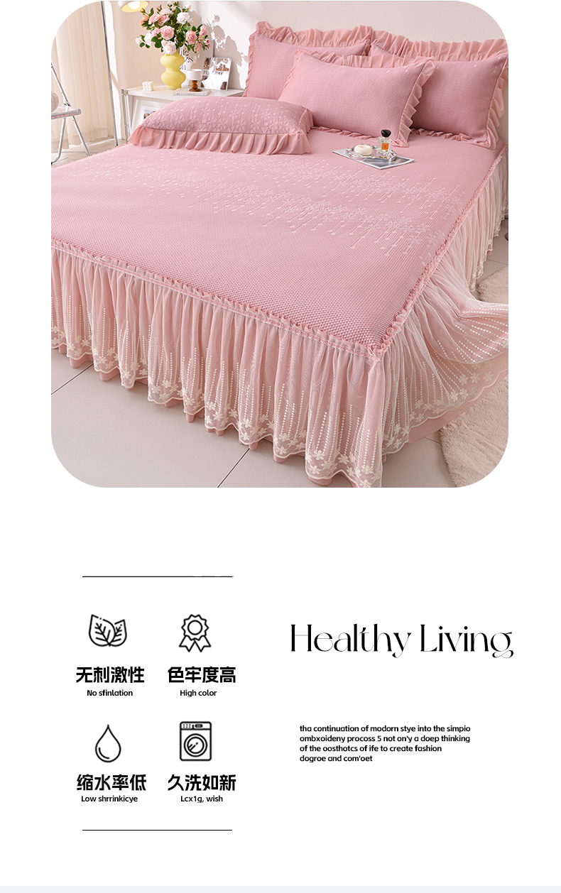 商品名称:(总)铠畅家纺 2025新款凉感豆豆床裙夏被四件套--幸运草