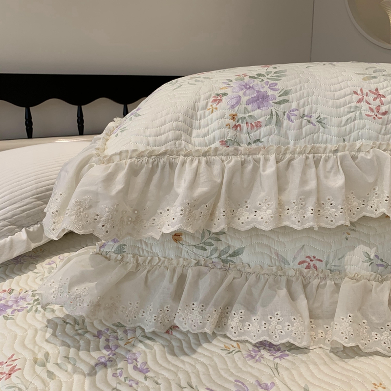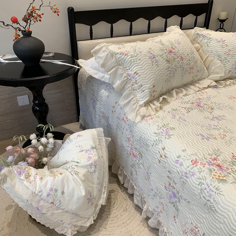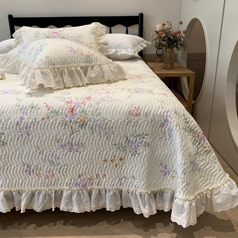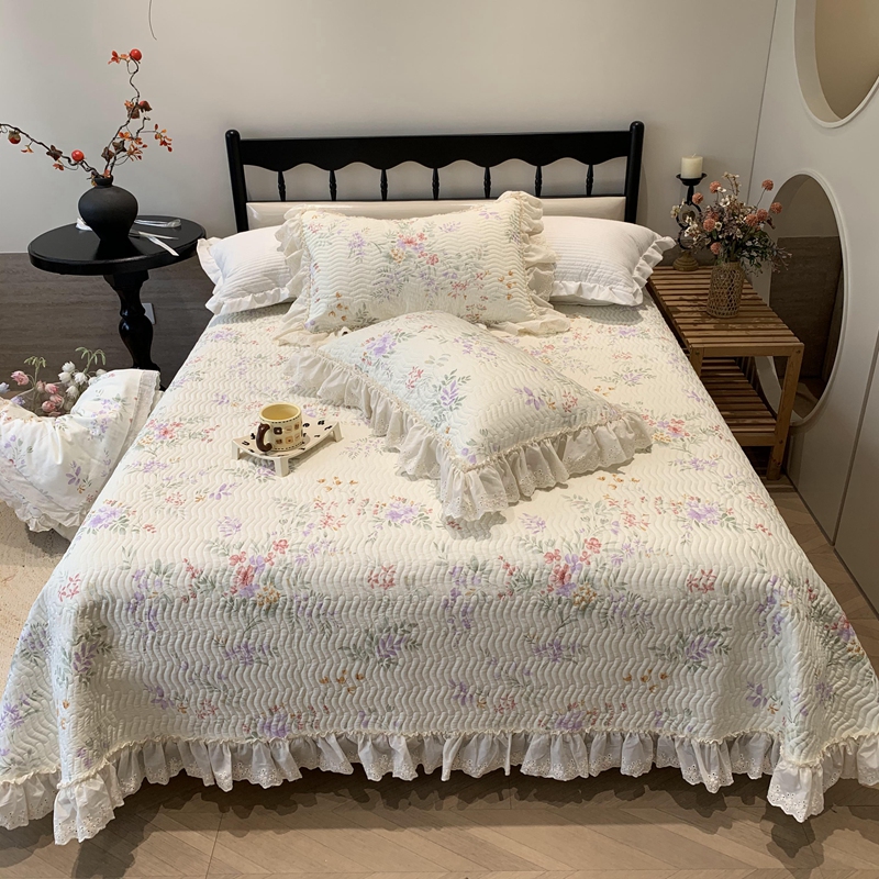 奈萝家纺 2025春夏新款全棉纯棉蕾丝花边款床盖三件套 夏之语
