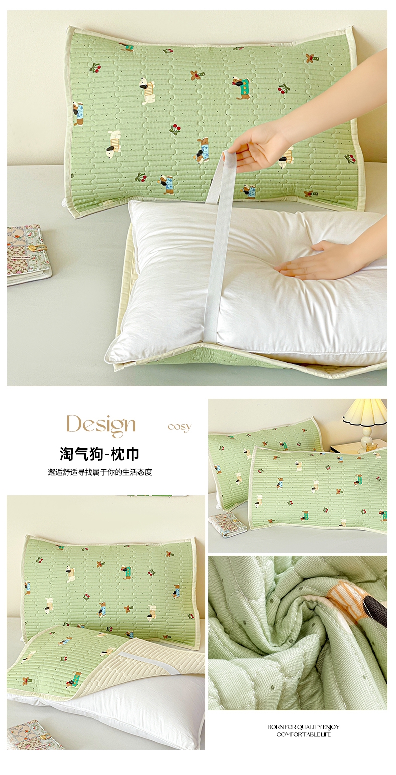 雅萱家纺 2025新款全棉双层纱夹棉枕巾 淘气狗-枕巾【一对】