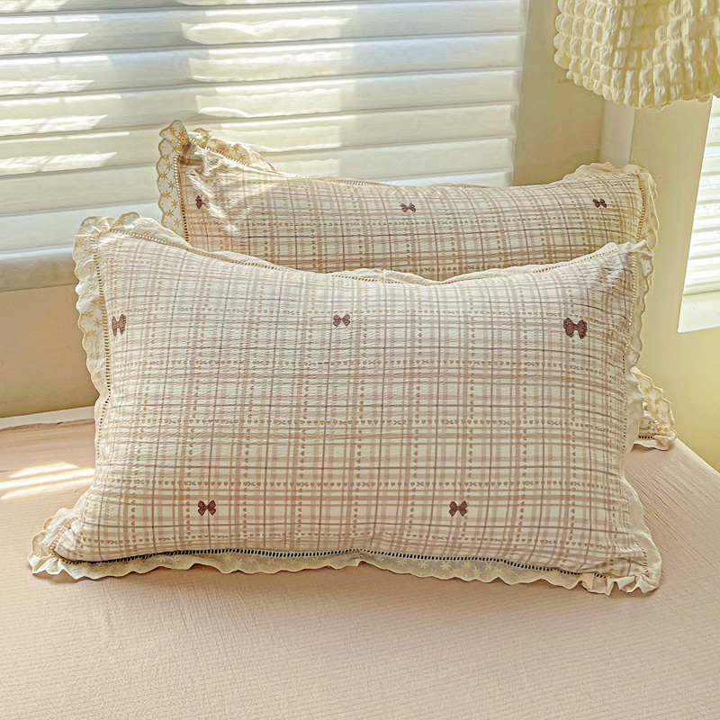 金梦拉家纺 2025新款提花纱布皱皱纱枕套(全棉镂空花边款) 萌萌兔