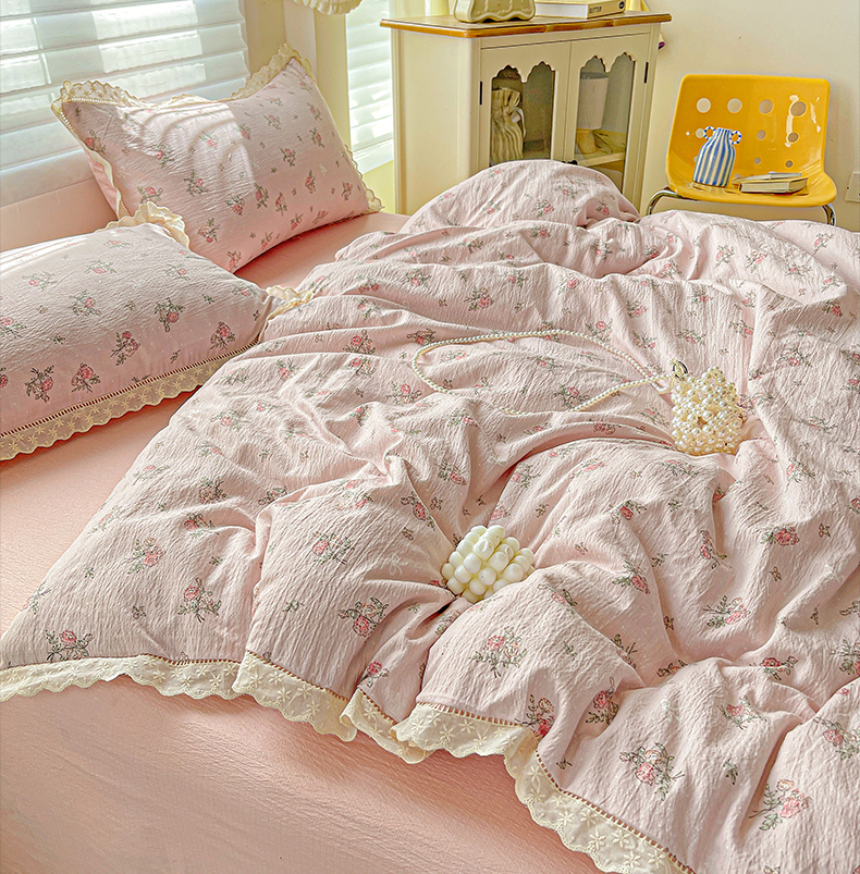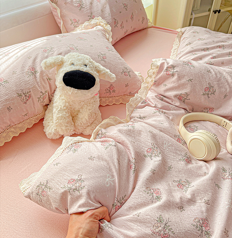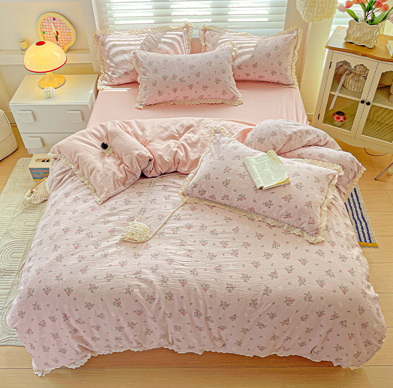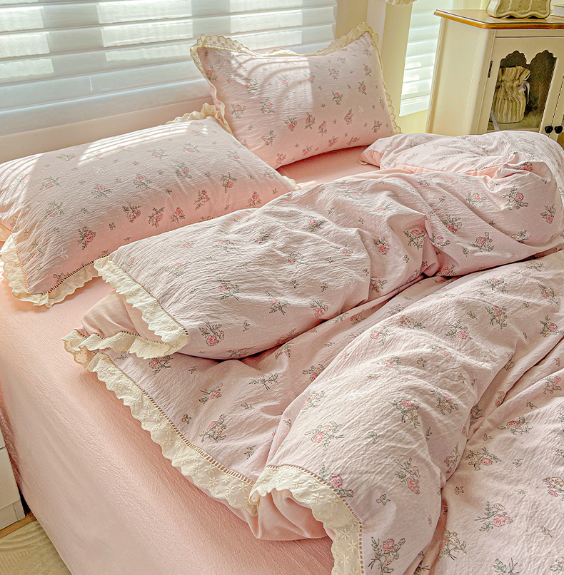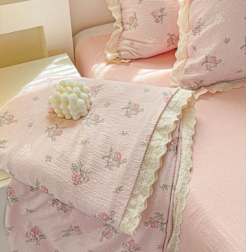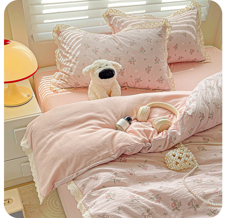 当前位置: 91家纺网 > 商品网购 > 床品套件 > 四件套 > 其它四件套 > 金梦拉家纺 2025新款提花纱布皱皱纱四件套(全棉镂空花边款) 镂空花边-花颜