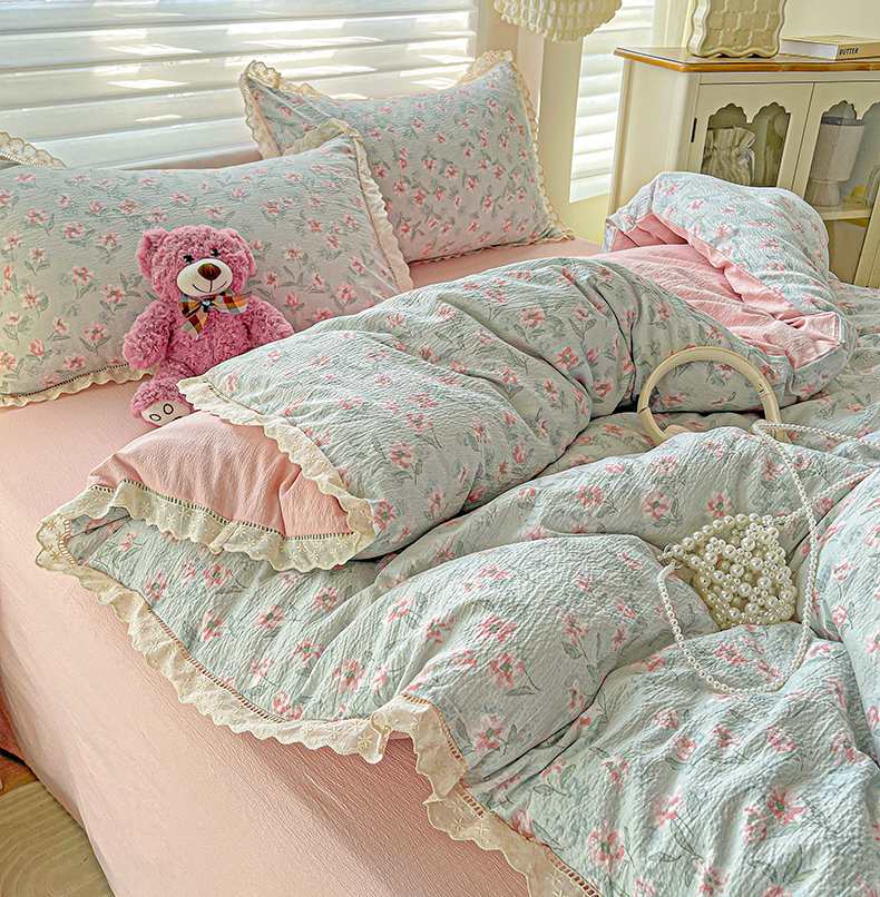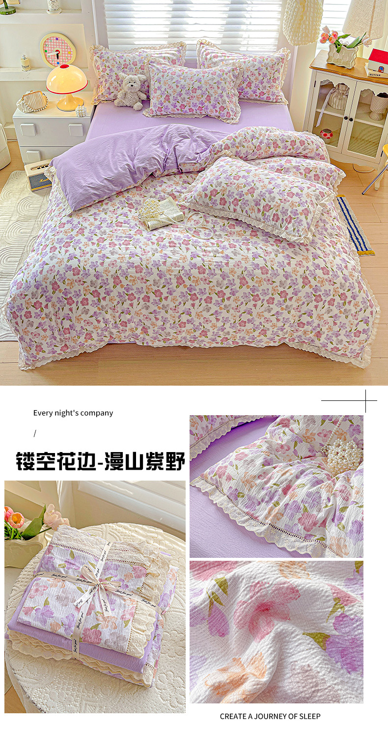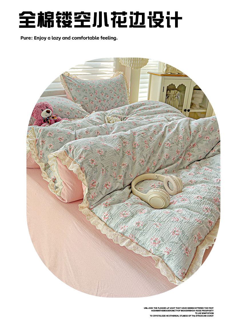 当前位置: 91家纺网 > 商品网购 > 床品套件 > 四件套 > 其它四件套 > 金梦拉家纺 2025新款提花纱布皱皱纱四件套(全棉镂空花边款) 镂空花边-萌萌兔