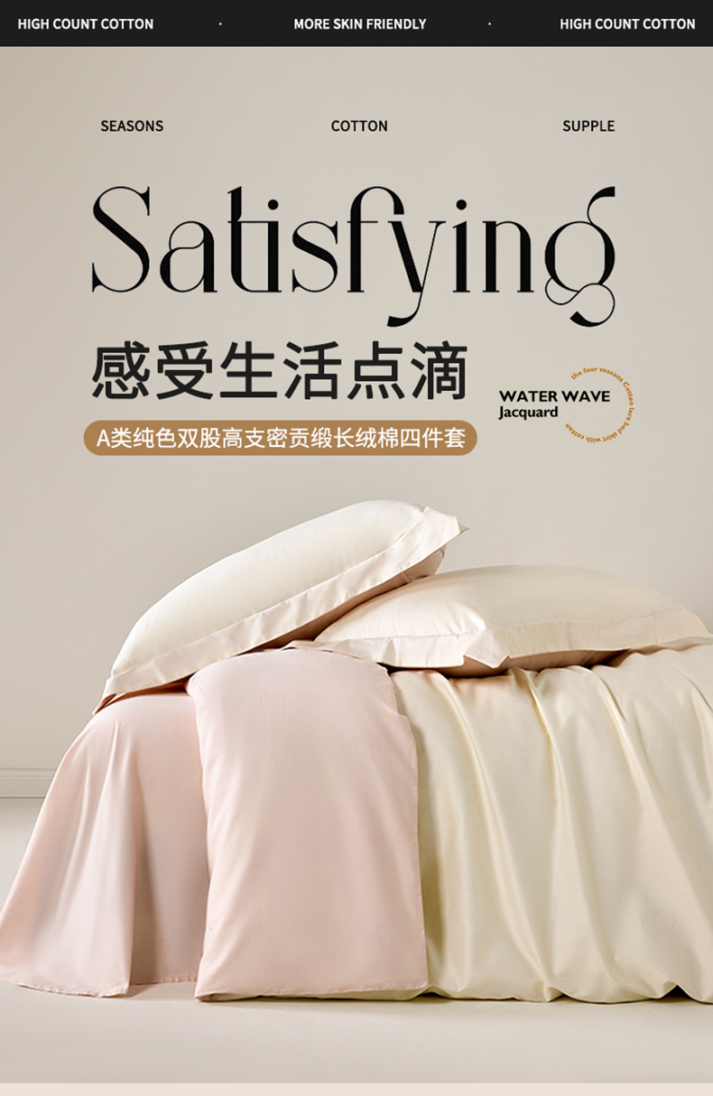 当前位置: 91家纺网 > 商品网购 > 床品套件 > 四件套 > 长绒棉四件套 > 丞音家纺 2025新款A类纯色高档礼盒包装双股高支蜜贡缎100s长绒棉四件套纯棉被套床单 洛克-白拼粉