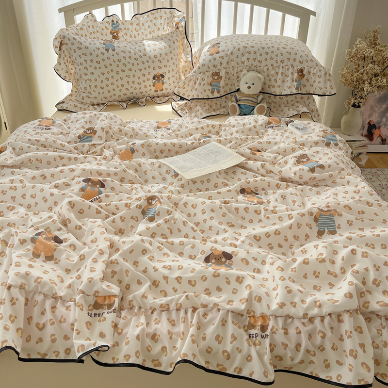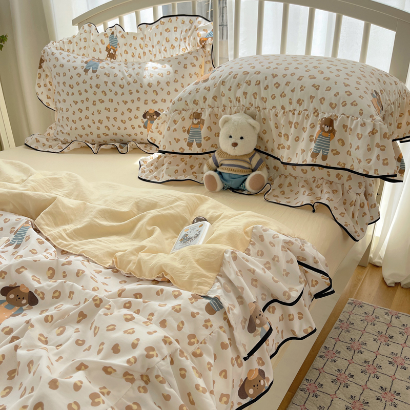 顾里家纺 2025春夏新款韩系云朵棉夏被夏凉被空调被四件套 咖豹小熊