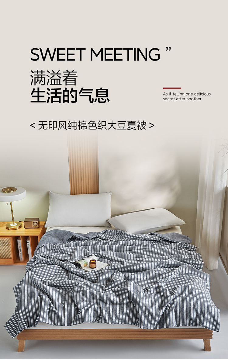 商品名称:良品汇馆 2025新款日式无印水洗棉夏被良品大豆纤维被条纹全棉柔软夏凉被空调被子 米密条-绿