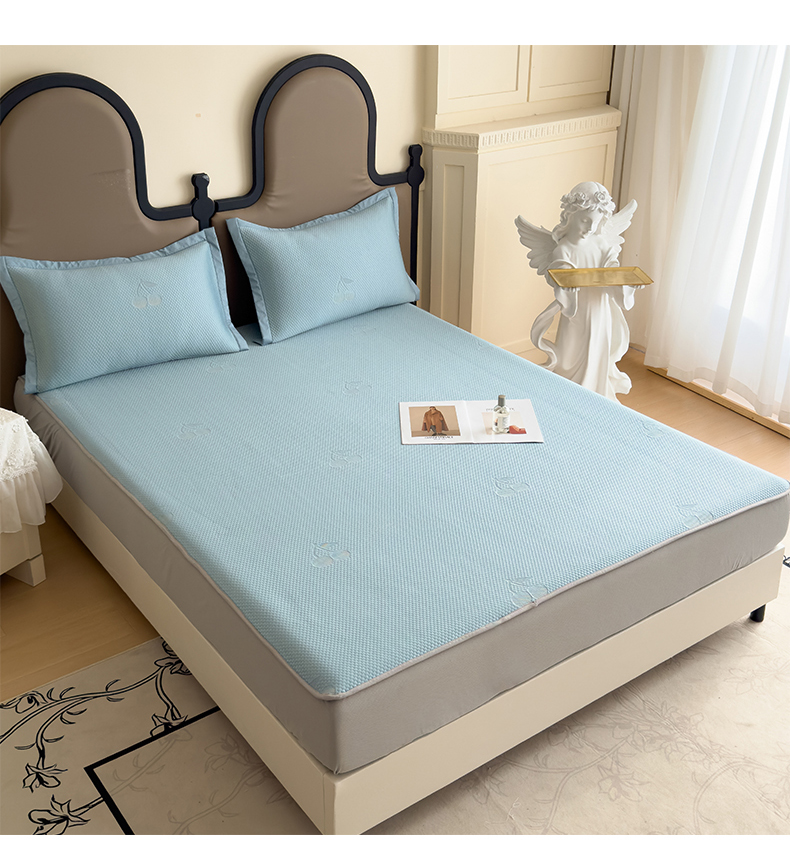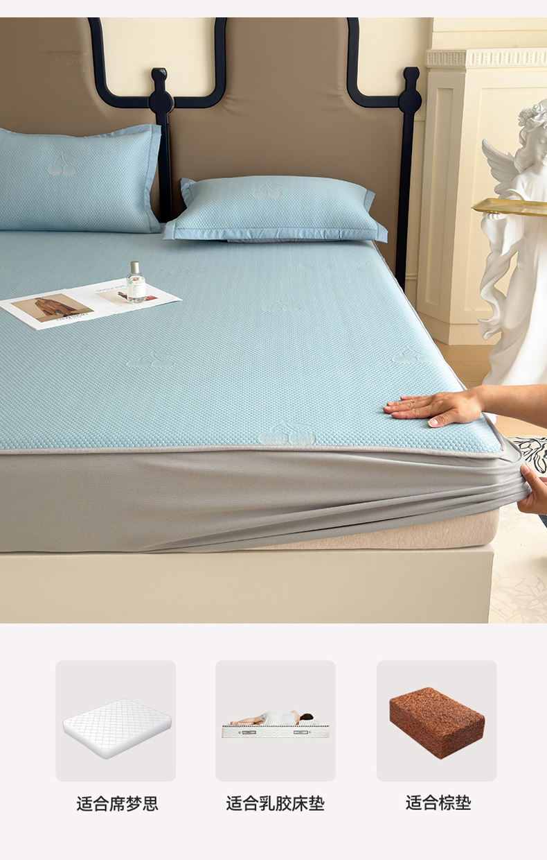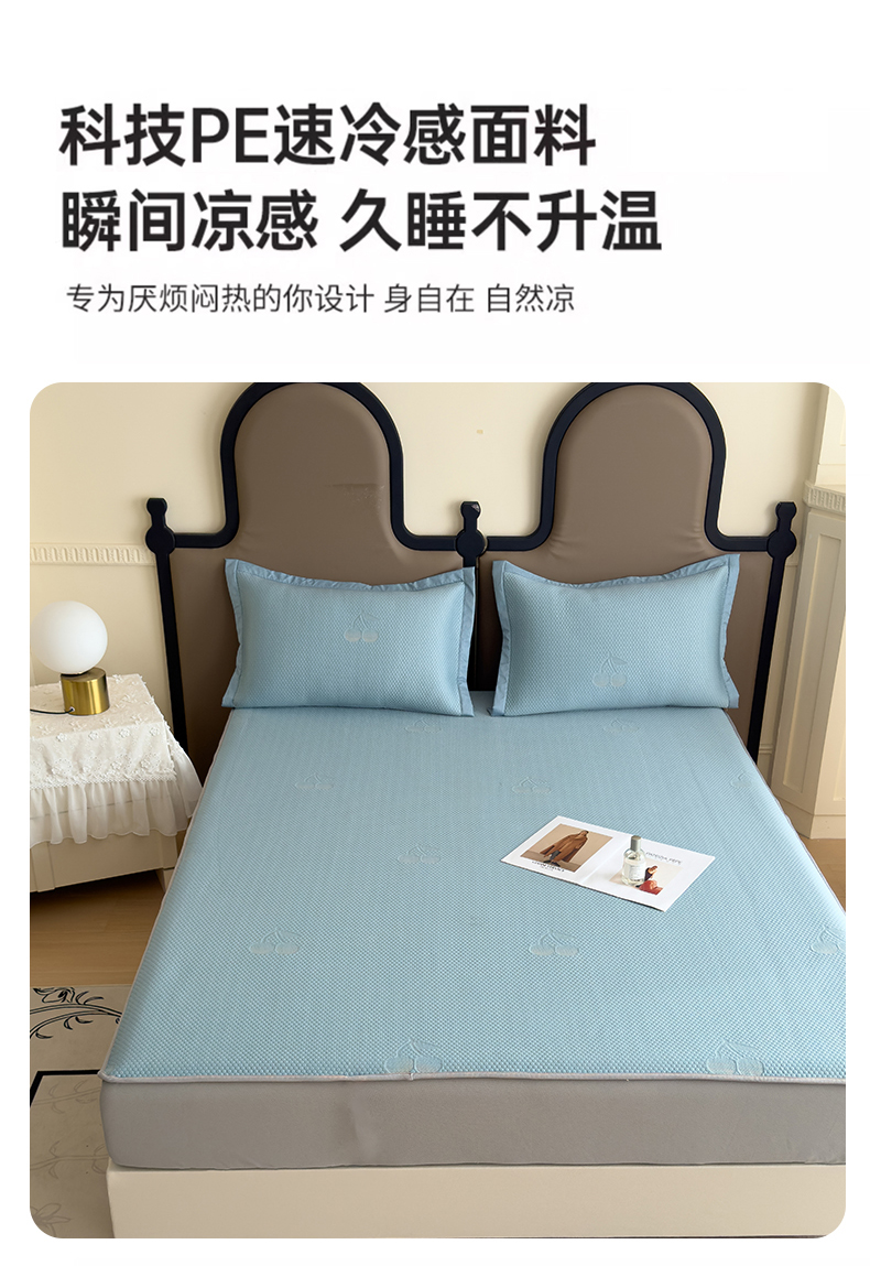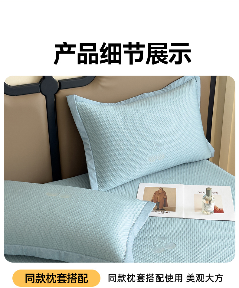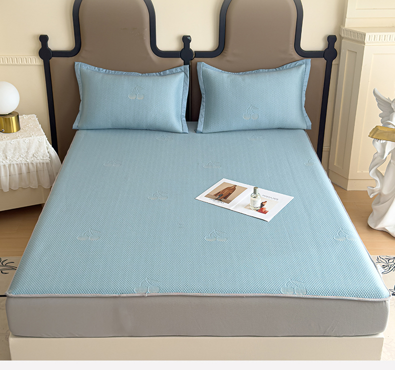瑞兴纺 2025新款高分子PE软凉席绣花款床笠款 床笠款-樱桃-蓝