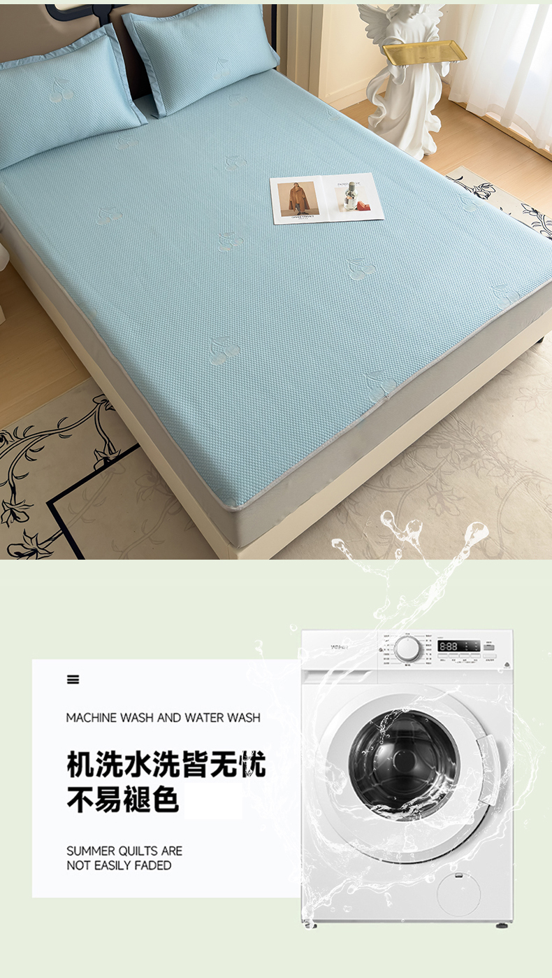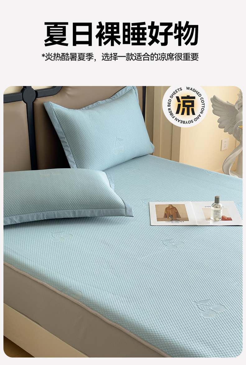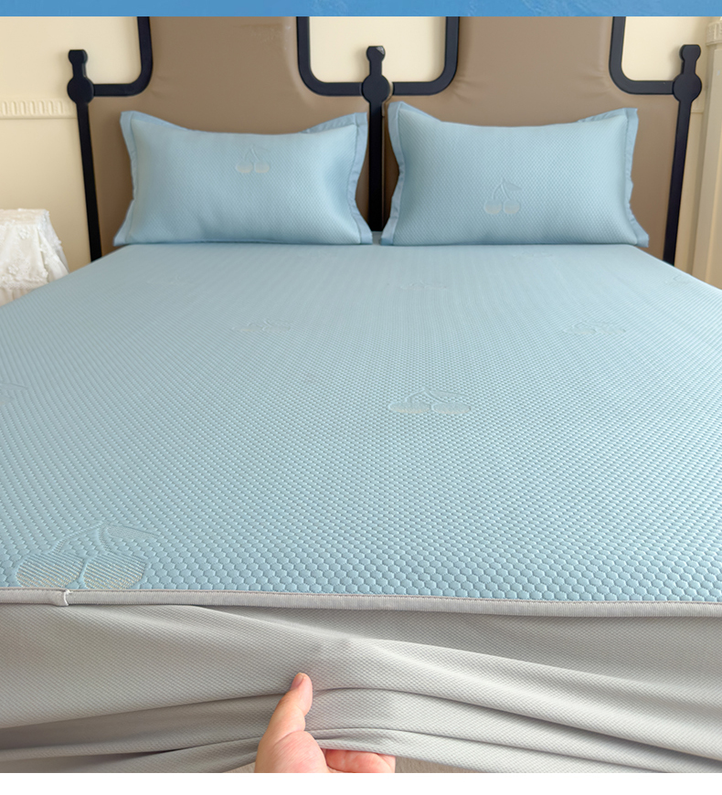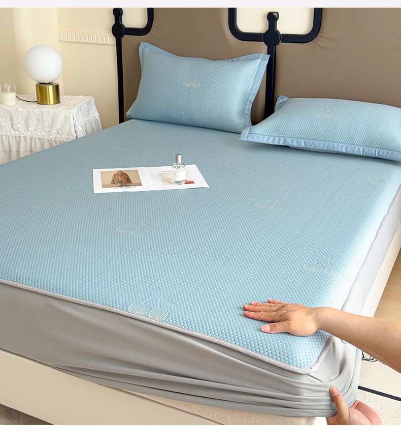 瑞兴纺 2025新款高分子PE软凉席绣花款床笠款 床笠款-樱桃-蓝