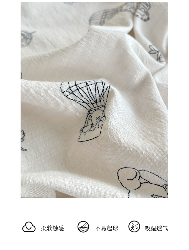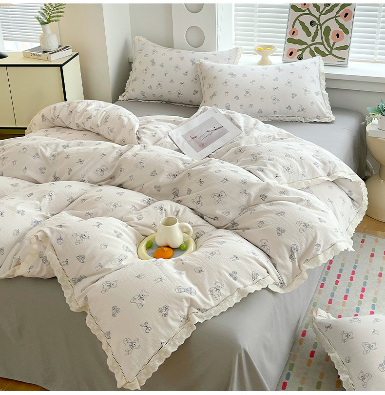 雨彤家纺 2025新款A类高克重云感皱皱双层纱全棉镂空花边款法式四件套-床拍图 蛋糕熊