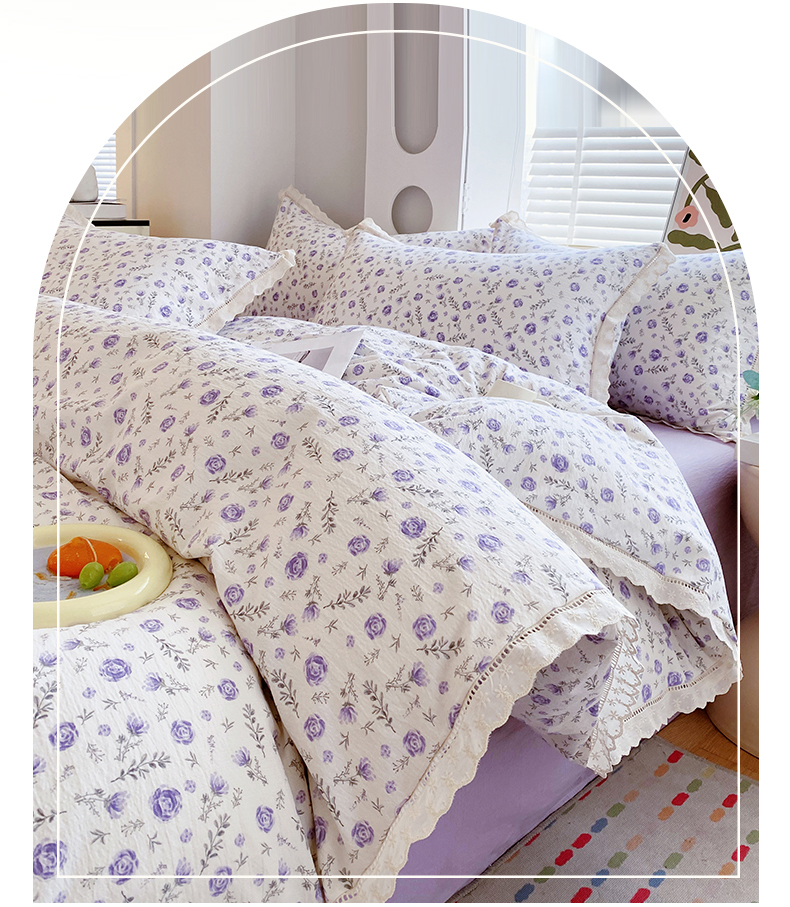 雨彤家纺 2025新款A类高克重云感皱皱双层纱全棉镂空花边款法式四件套-床拍图 惜花芷