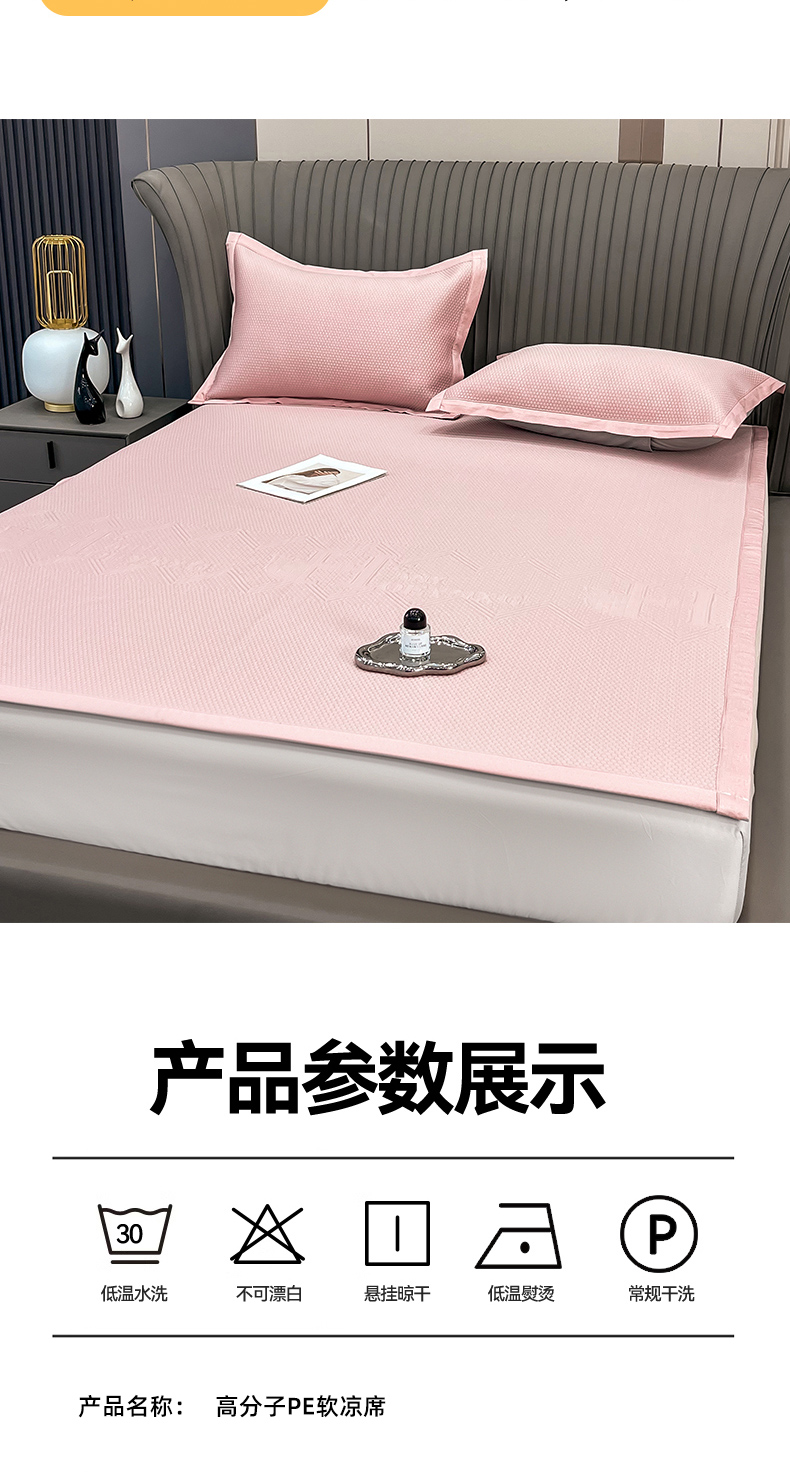 商品名称:瑞兴纺 2025新款高分子PE软凉席绣花款床单款 床单款-路易威-粉