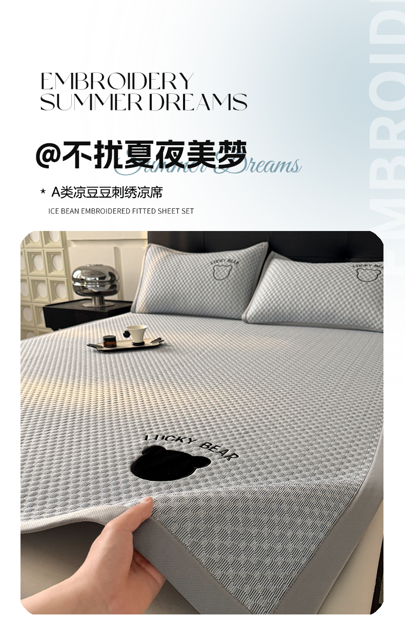 当前位置: 91家纺网 > 商品网购 > 床上用品 > 凉席 > 冰丝席 > 梵朴 2025新款直播贴布刺绣凉感凉豆豆凉席席子三件套空调软席-幸运熊系列 幸运熊-蓝