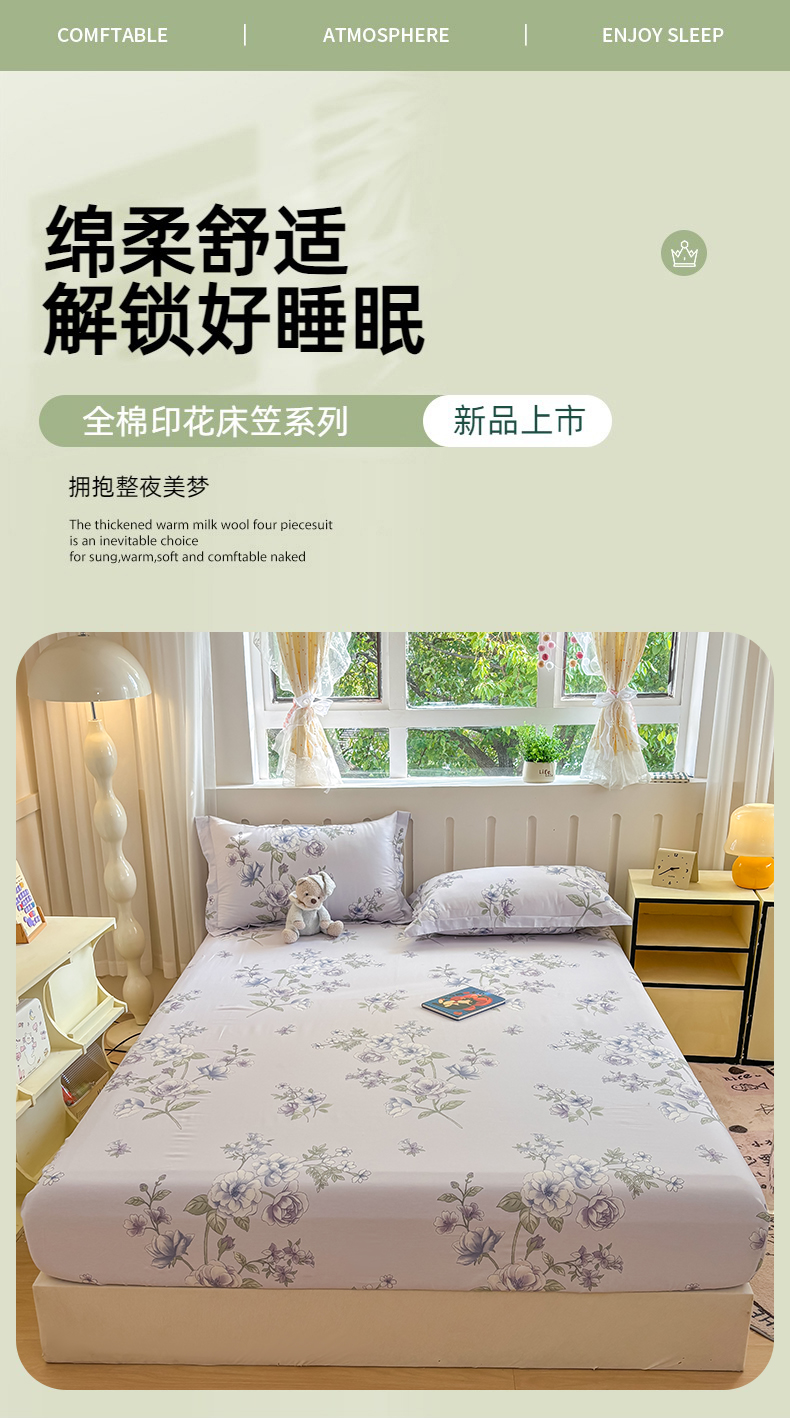 商品名称:大吉 2025新款全棉印花床笠 紫韵