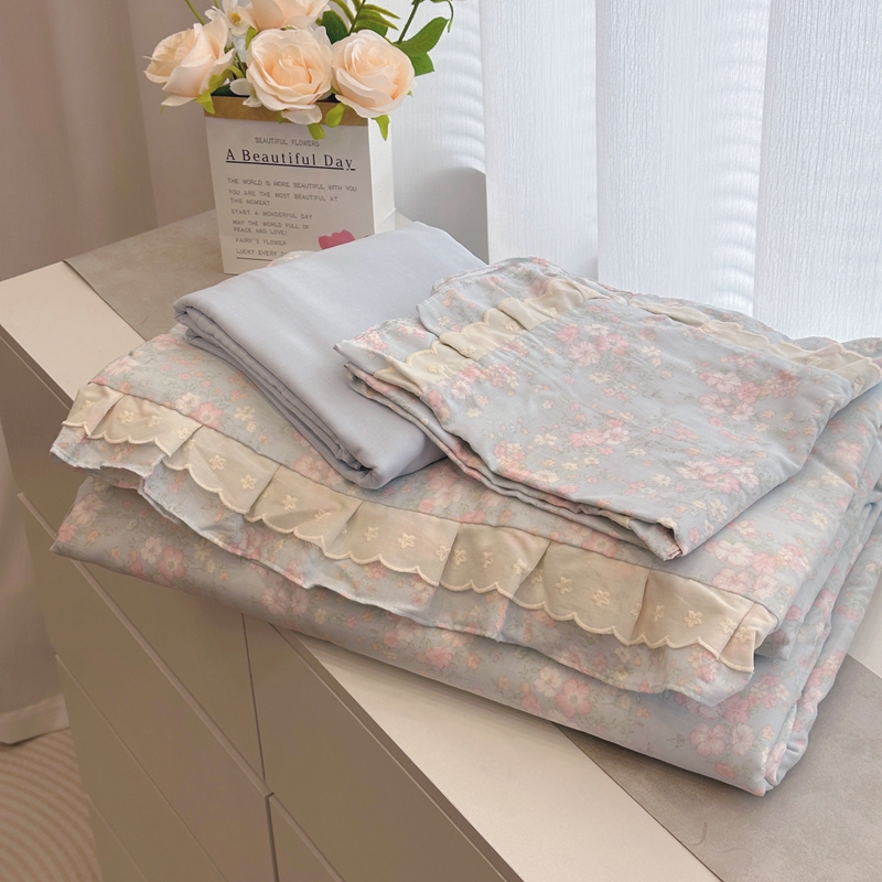 (总)黛馨 2025春夏新款全棉纯棉A类双层纱工艺款夏被夏凉被空调被四件套双花边款