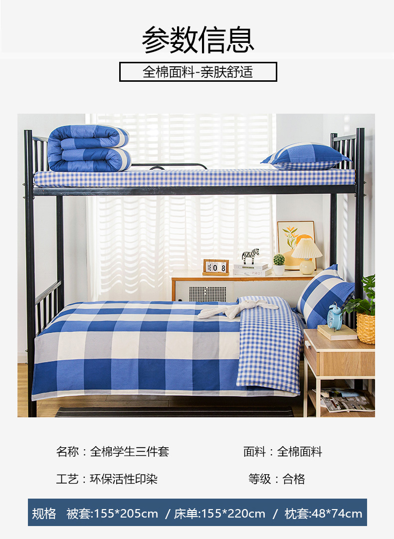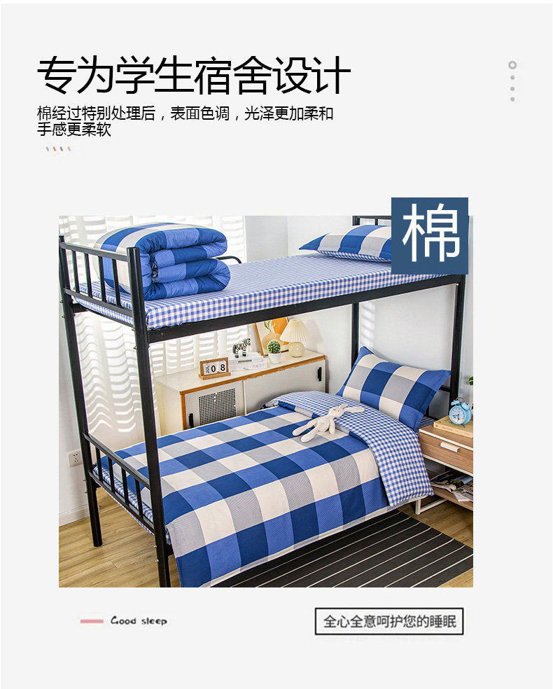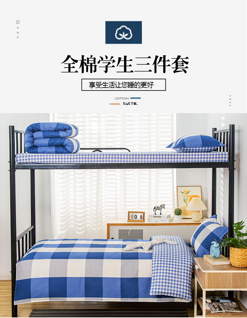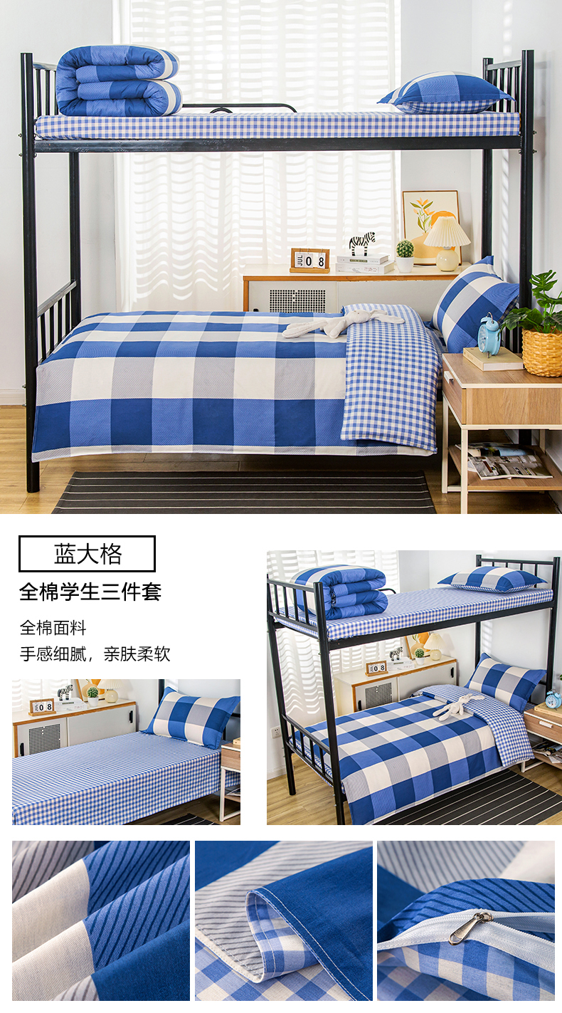 当前位置: 91家纺网 > 商品网购 > 床品套件 > 三件套 > 乐旗 2025新款全棉12868学生宿舍三件套纯棉六件套装 蓝大格