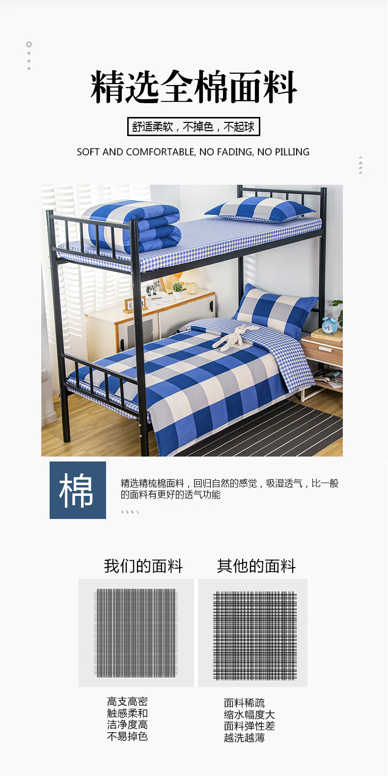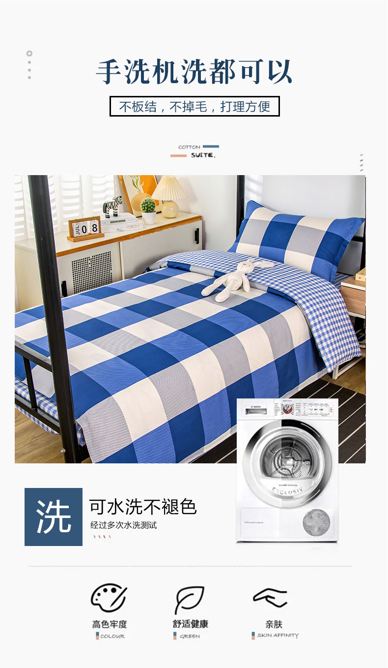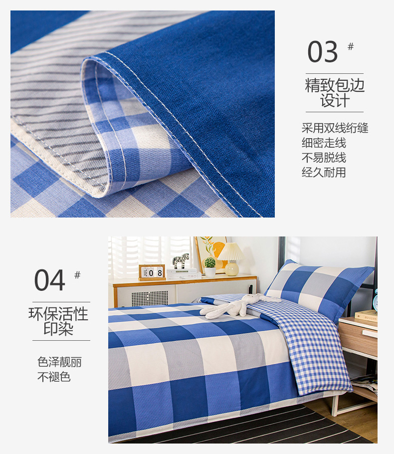 当前位置: 91家纺网 > 商品网购 > 床品套件 > 三件套 > 乐旗 2025新款全棉12868学生宿舍三件套纯棉六件套装 蓝大格