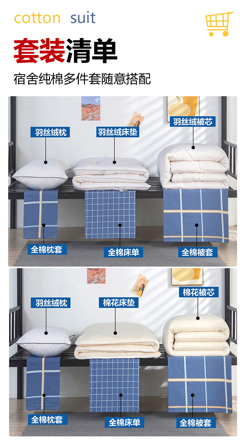 六件套:【三件套+4斤羽丝绒被子+4斤羽丝绒床垫(90*200)+枕芯】 | ¥139.00 |