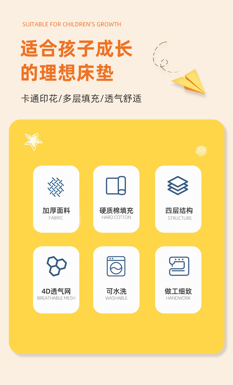 商品名称:御棉坊 2025新款A类水洗棉儿童4D床垫 城堡飞马