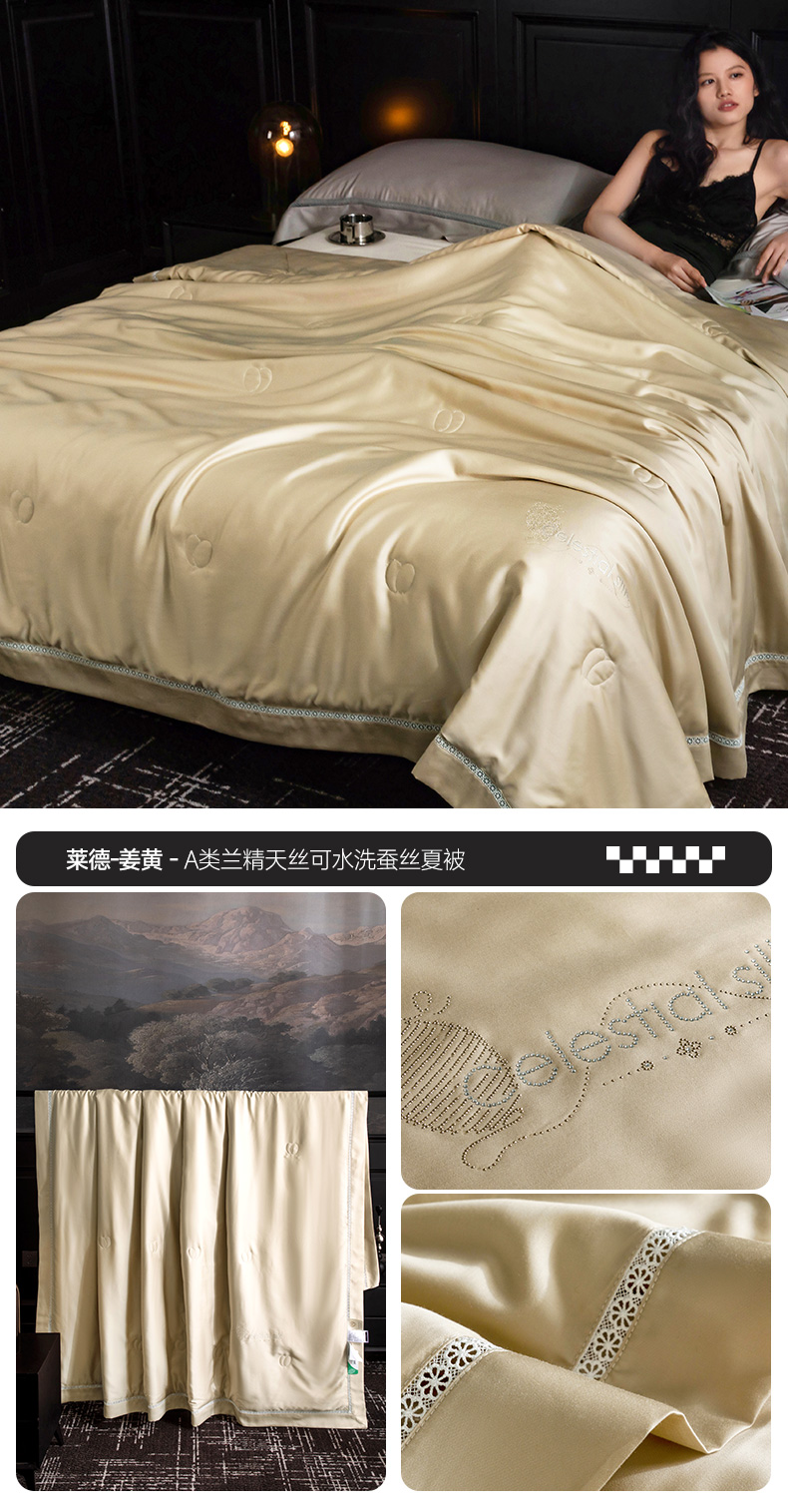 商品名称:被靠被 2025新款可水洗蚕丝夏被-莱德 莱德-姜黄