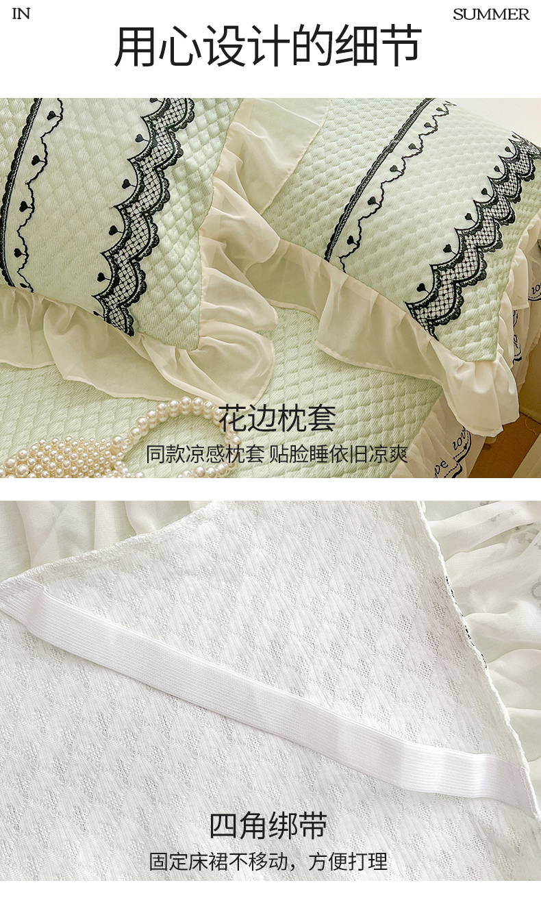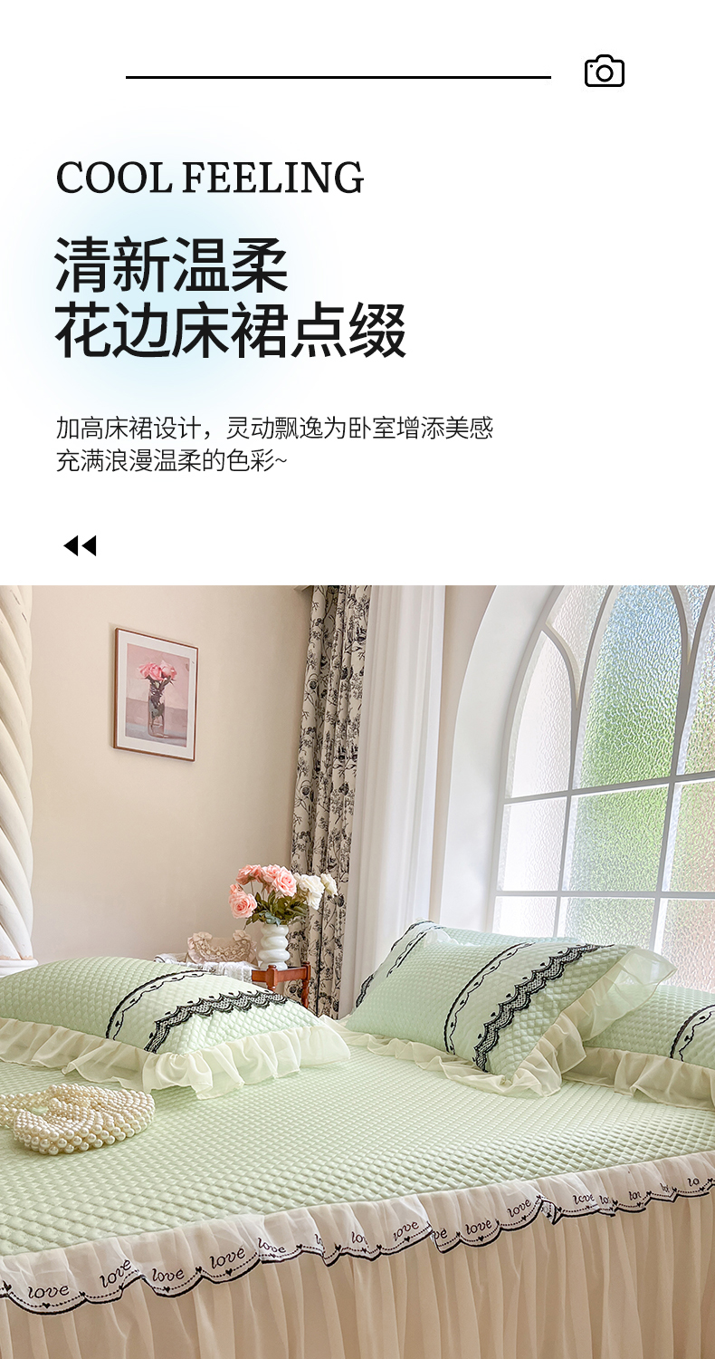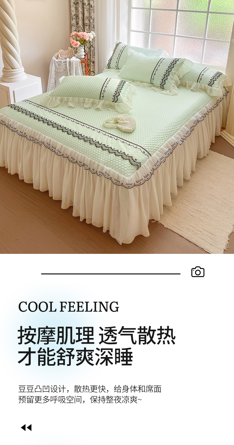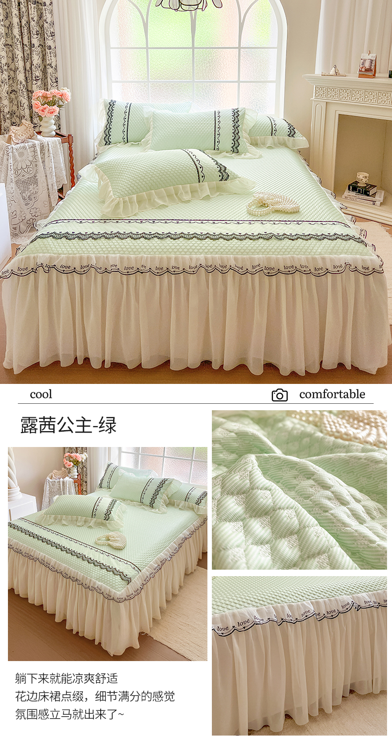商品名称:网红馆(ck家纺) 2025新款凉豆豆床裙款凉席三件套-露茜公主 露茜公主-绿