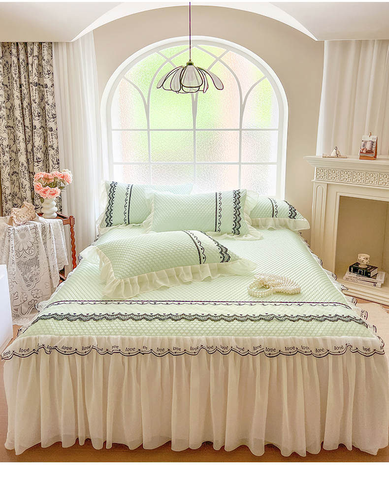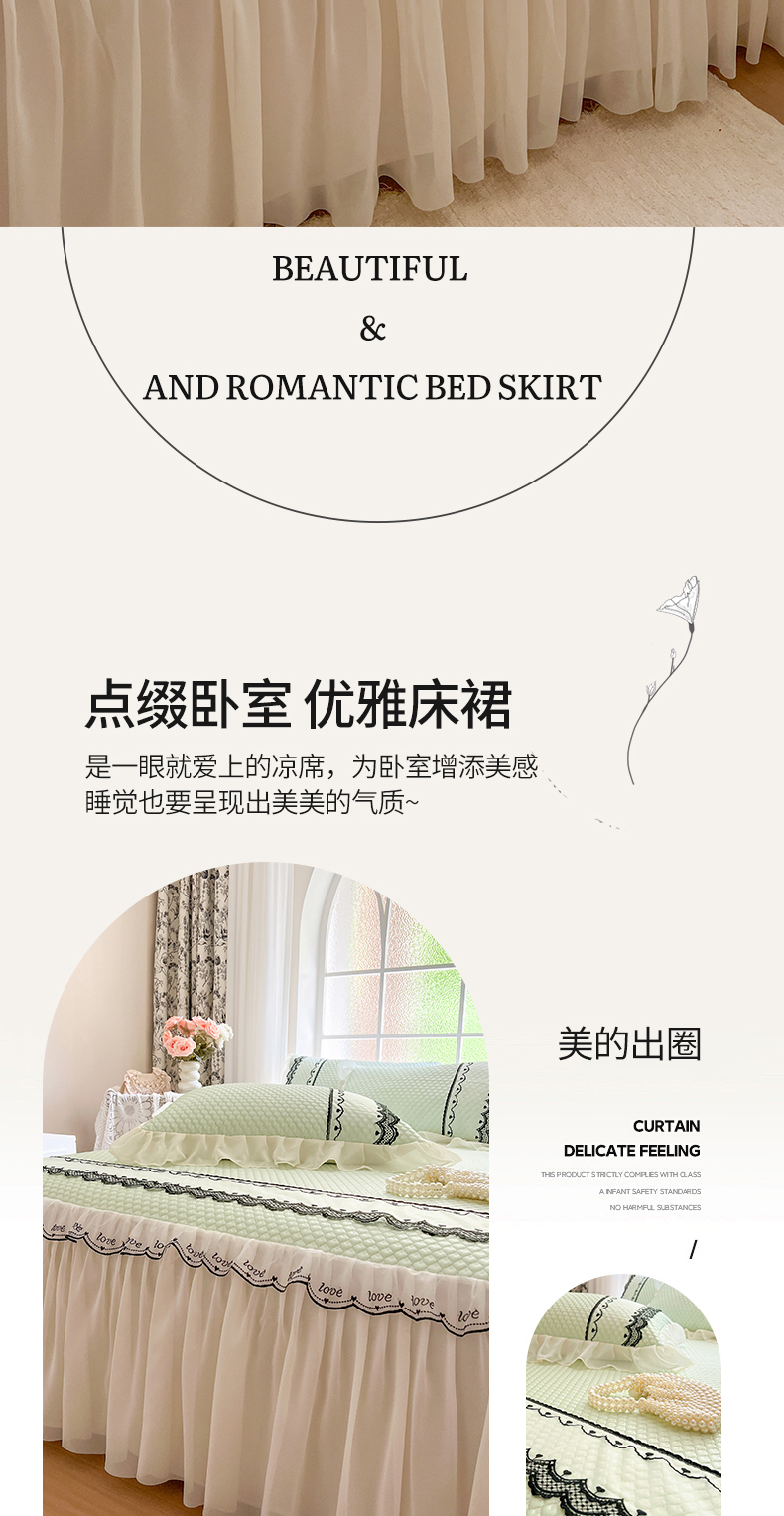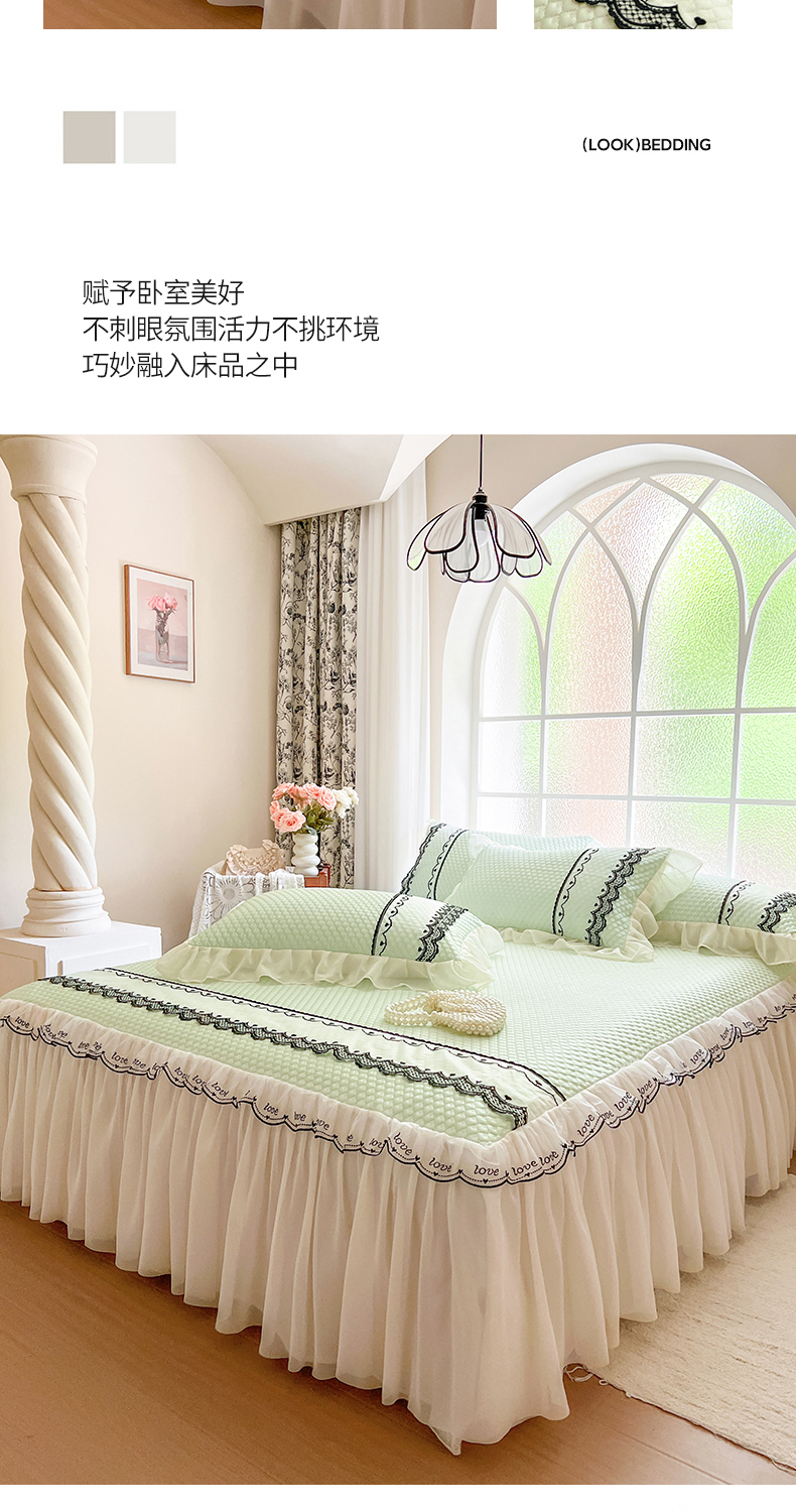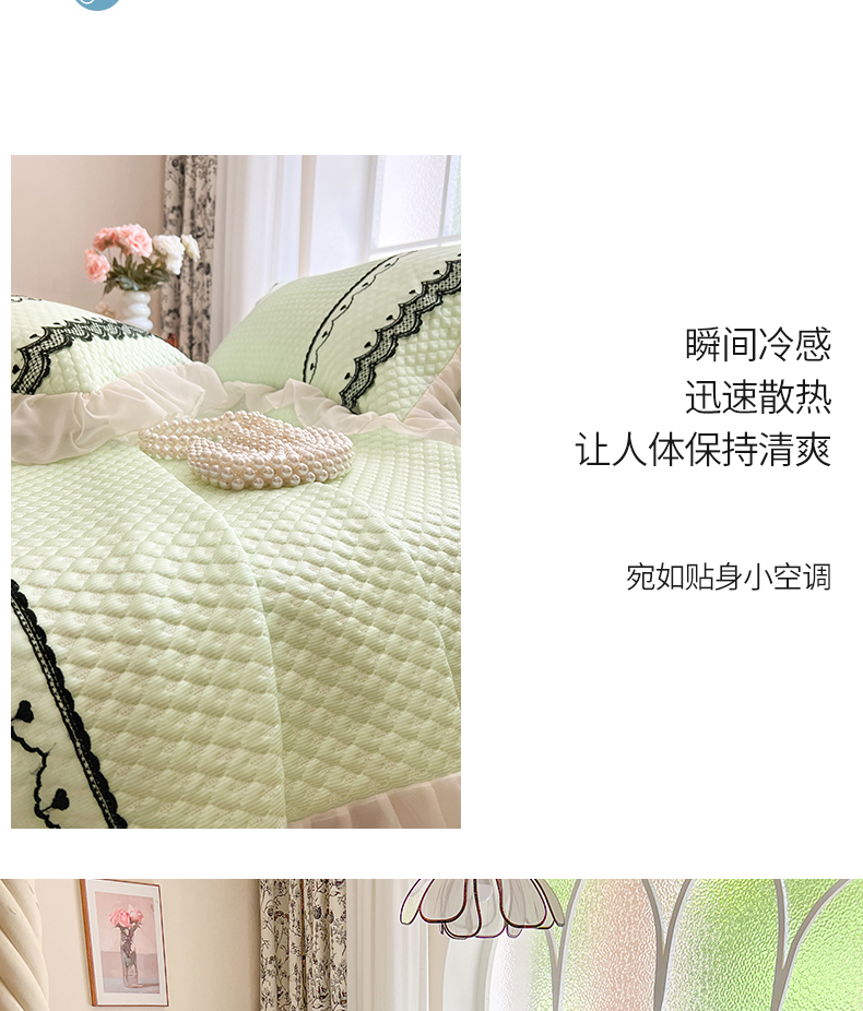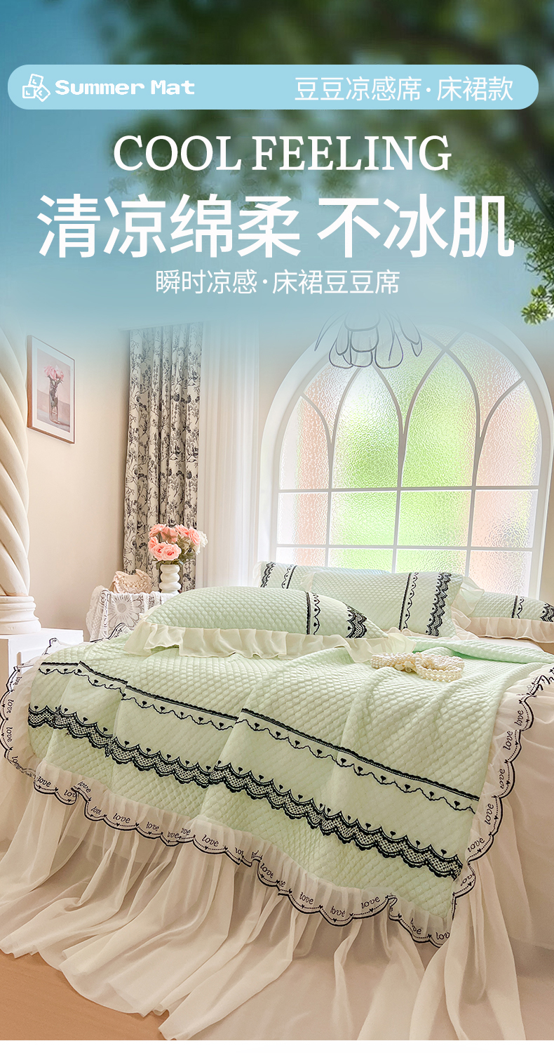 商品名称:网红馆(ck家纺) 2025新款凉豆豆床裙款凉席三件套-露茜公主 露茜公主-绿
