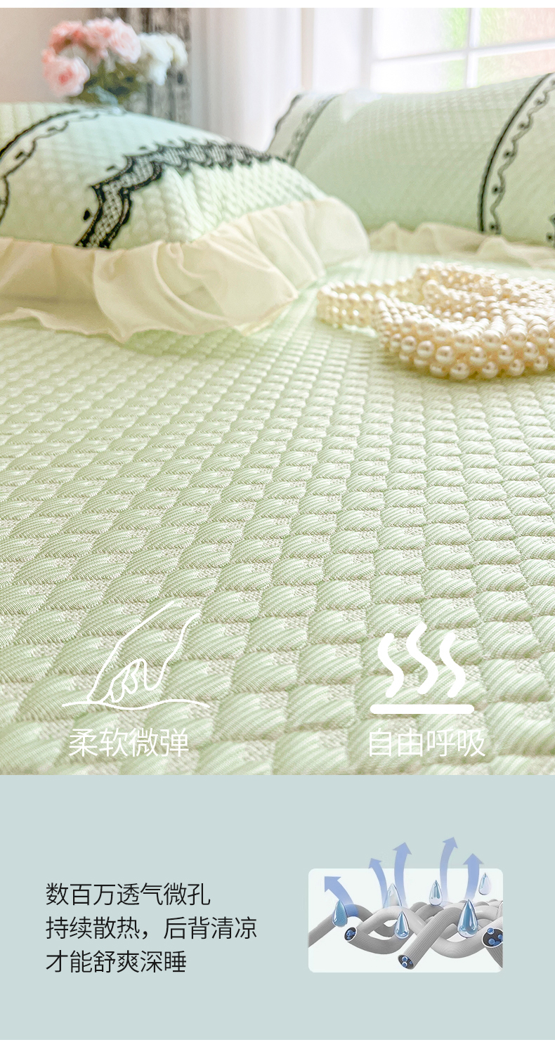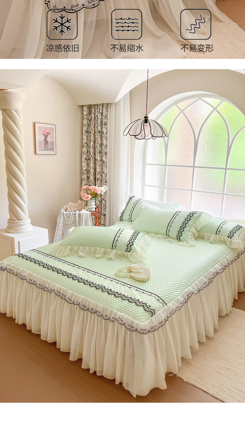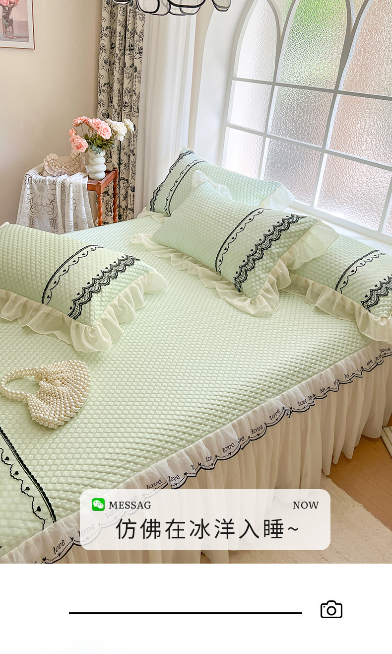 网红馆(ck家纺) 2025新款凉豆豆床裙款凉席三件套-露茜公主 露茜公主-绿