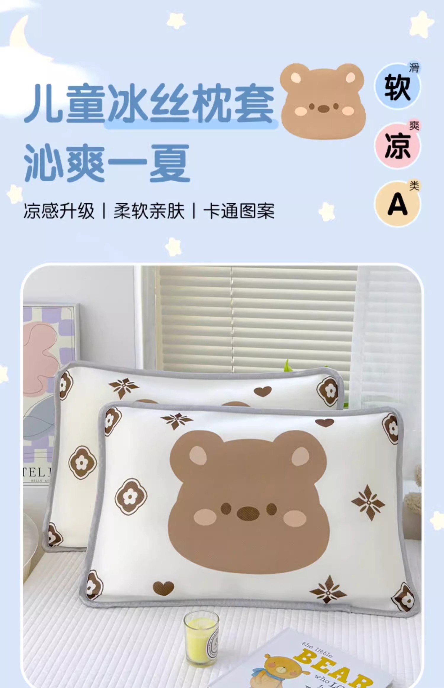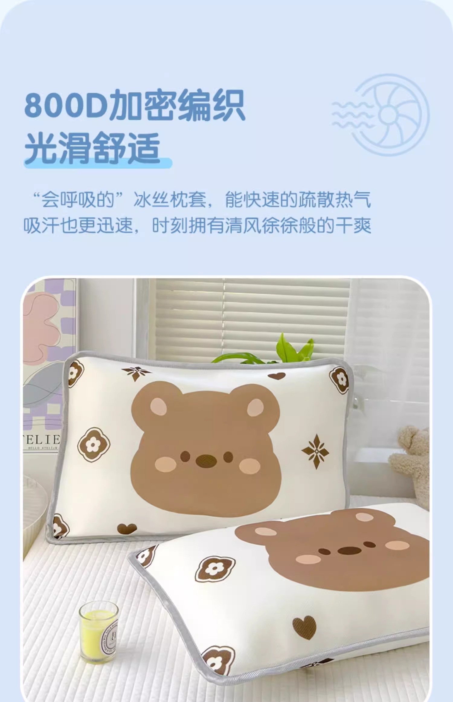 丽美人家纺 2025新款儿童冰丝枕套 呼呼熊