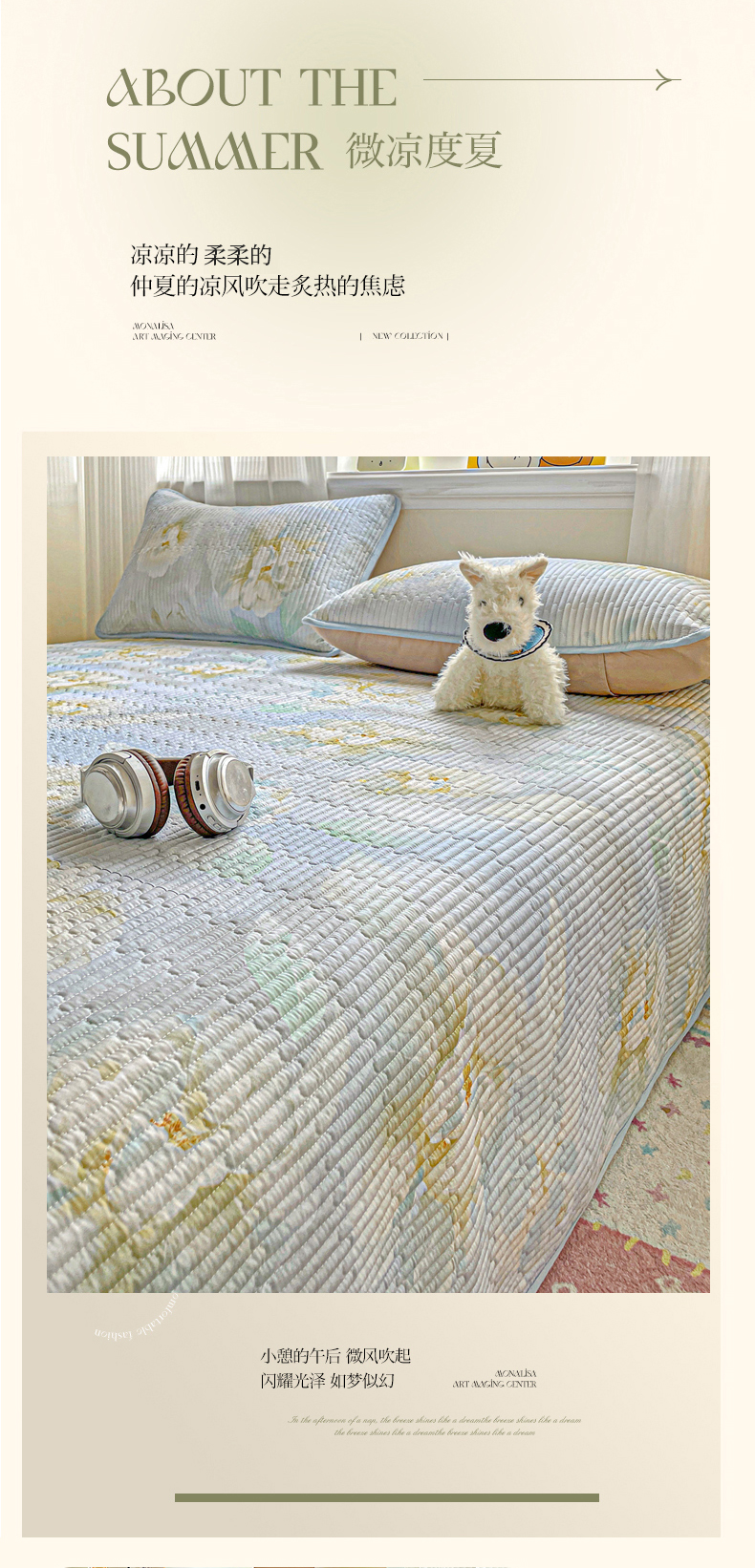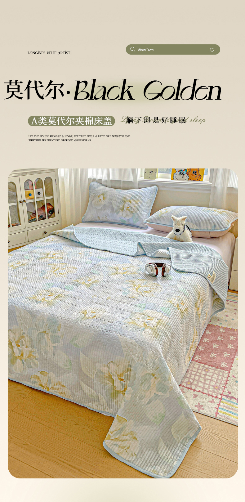 恒尚居 2025新款莫代尔天丝夏季床盖印花夹棉床单三件套床褥垫-系列二 莫代尔-清凉一夏
