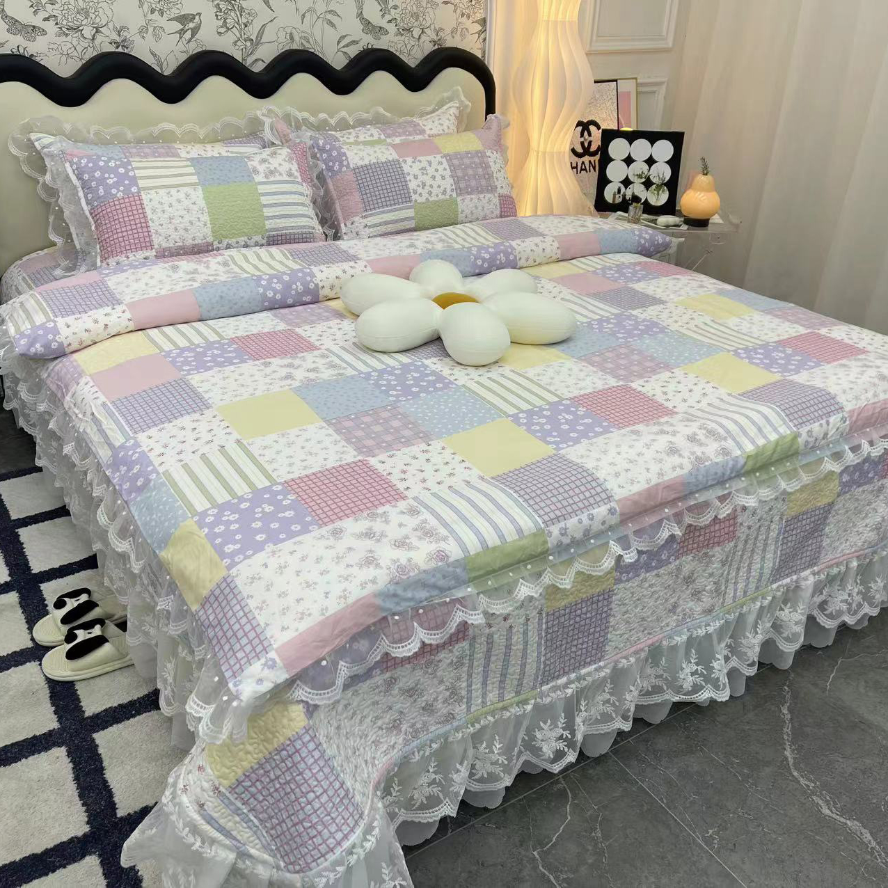 (总)禧瑞谷 2025新款全棉纯棉双层花边绗缝夹棉榻榻米支持定制农村大炕盖,白波点蝴蝶结,诚意布格,花丛兔,梦境,谬格子蝴蝶结,奶油草莓,条纹熊头,香香格子,格调蓝,粉底草莓,草莓熊,白底波点,笑脸,缪格子蝴蝶结 ,梦境 ,洛丽塔粉,彩条熊