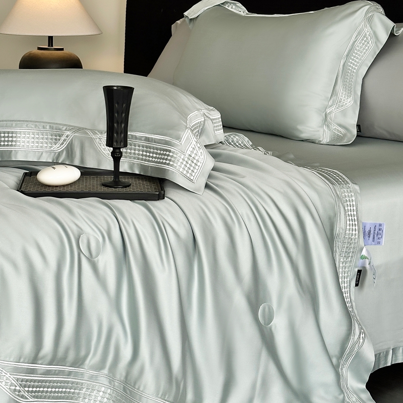 (总)馨蕊家居 2025新款80SLF奥地利兰精天丝夏被四件套-知否系列,知否-氧气绿,知否-月光白