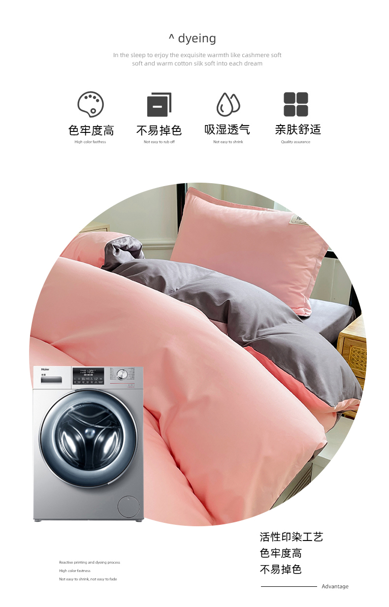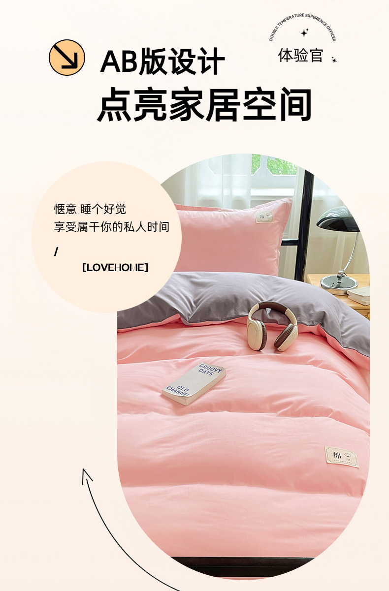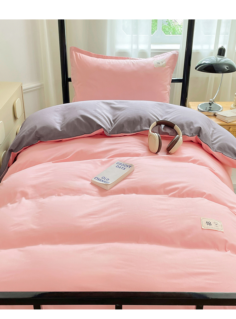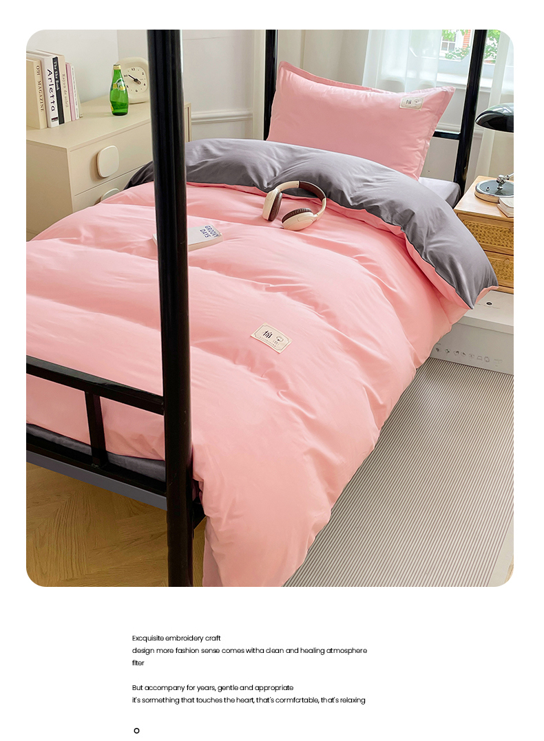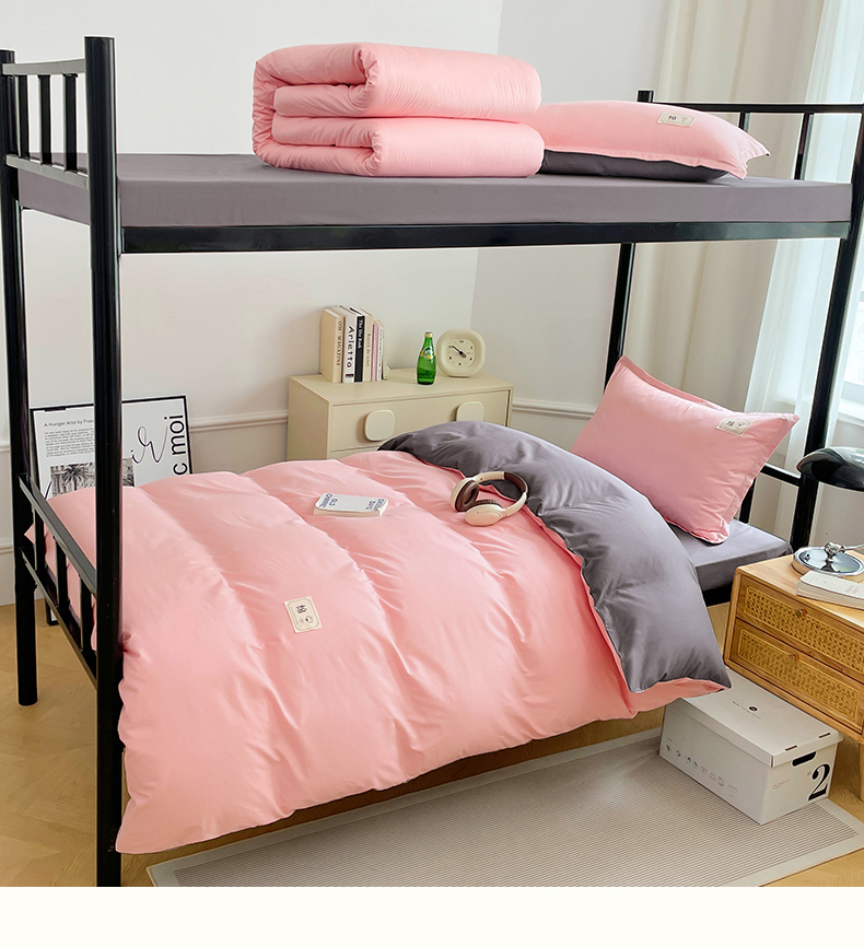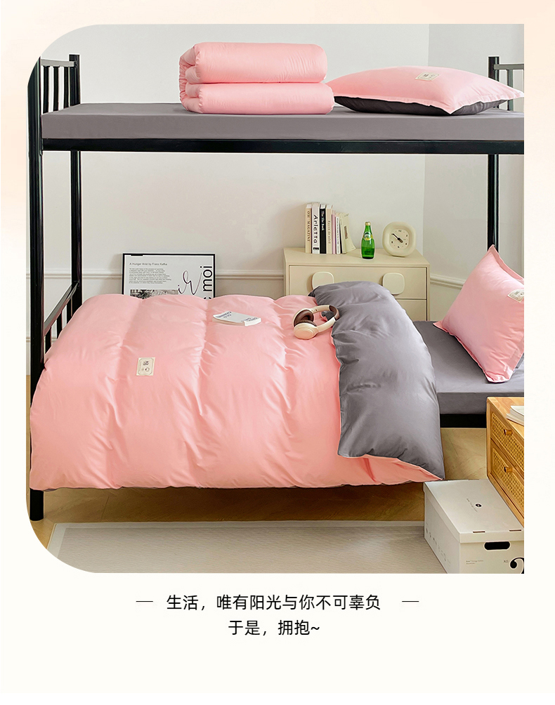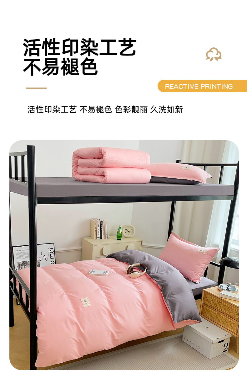 • 91家纺网 家纺一手货源 找家纺 锦润家纺2025新款13372全棉纯色双拼学生宿舍三件套六件套